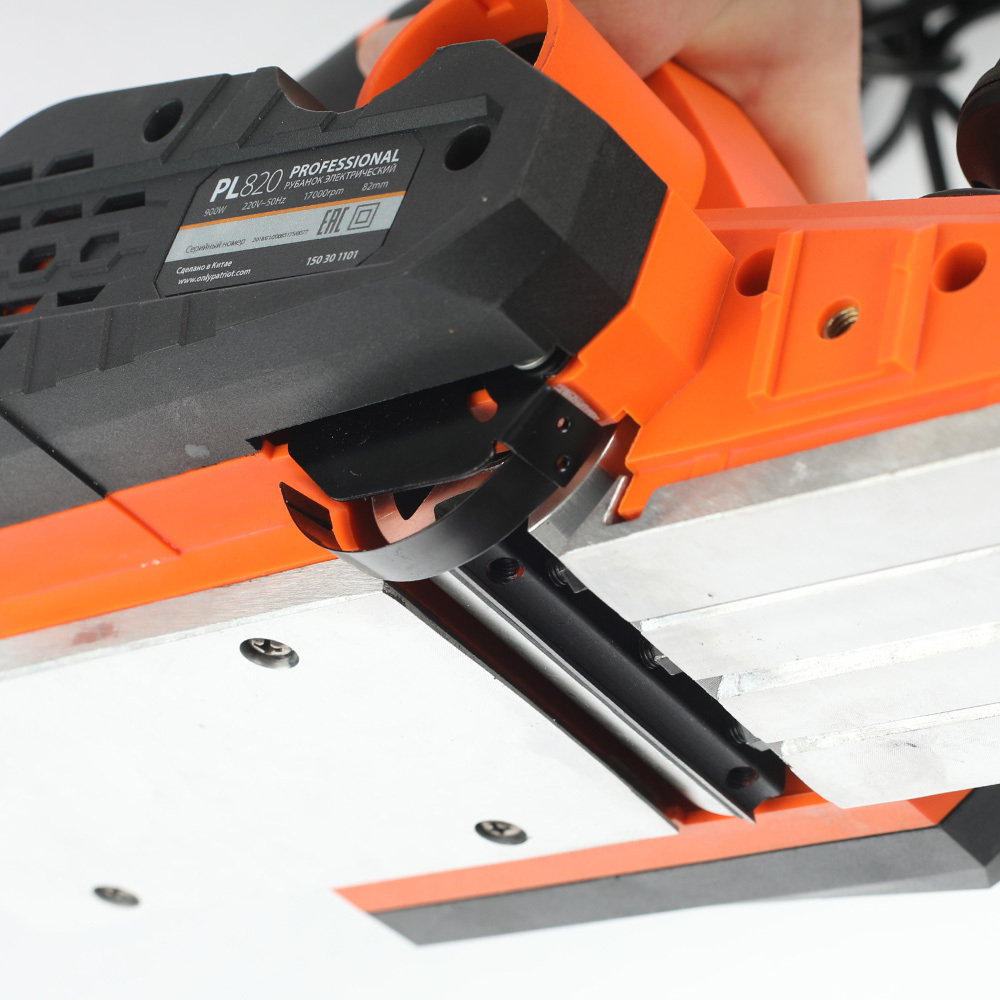 Электрорубанок PL 820 – эффективный, удобный в эксплуатации инструмент профессионального уровня. Система быстрой замены лезвий SharpCut и комплект запасных ножей существенно увеличит время работы. Высокая скорость вращения лезвий облегчит работу с пластиком и плотными сортами деревьев. Увеличенная максимальная глубина паза позволит выполнить большой спектр работ.