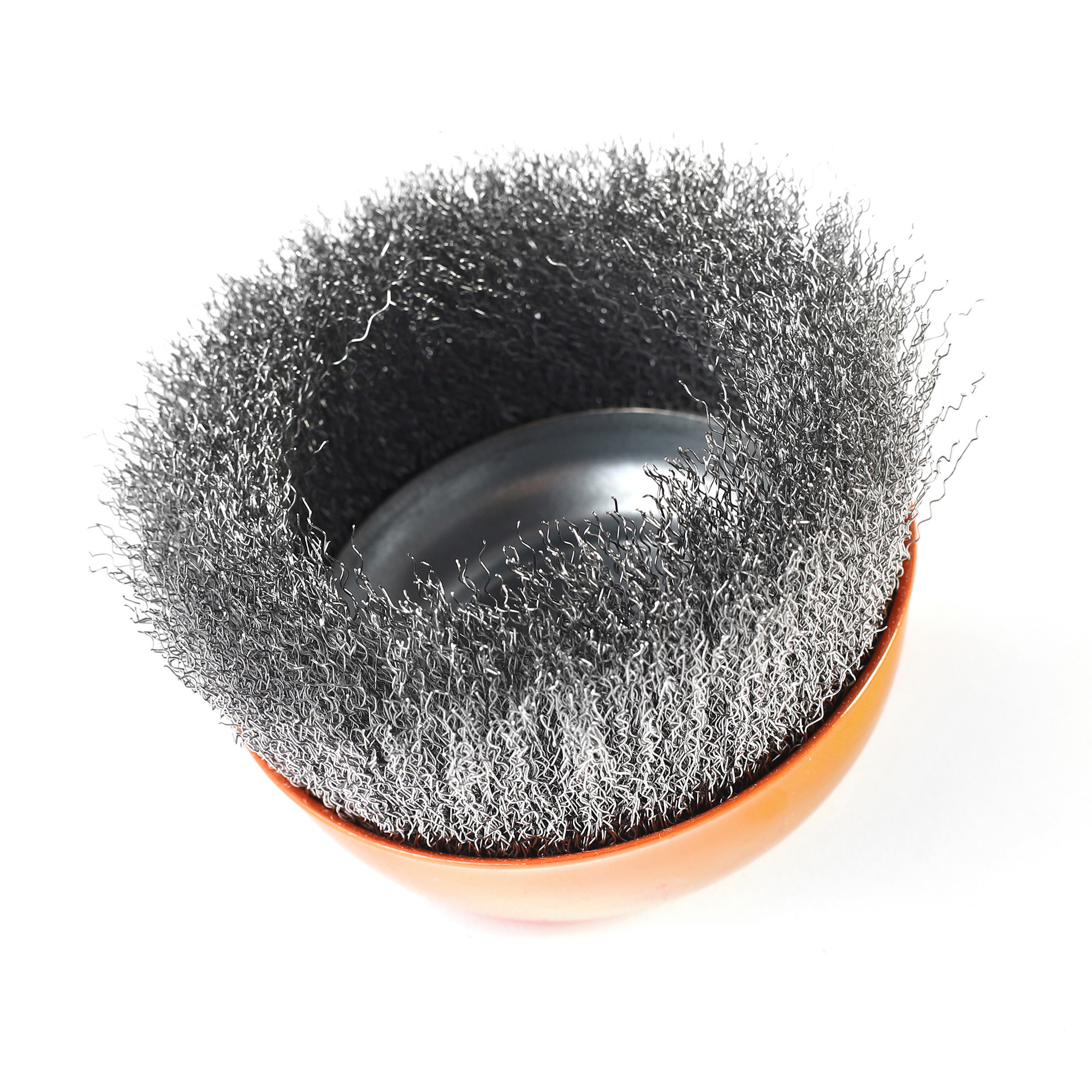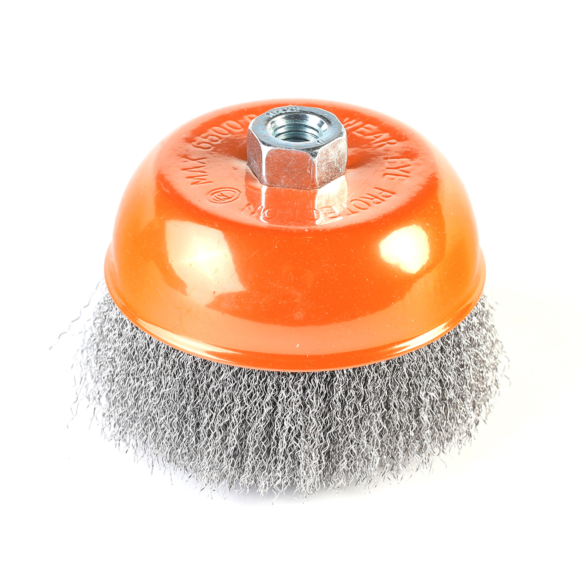 чашеобразная проволочная щетка для УШМ для снятия лака; краски; зачистки ржавчины; Наружный диаметр 125мм; посадка М14; стальная гофрированная проволока