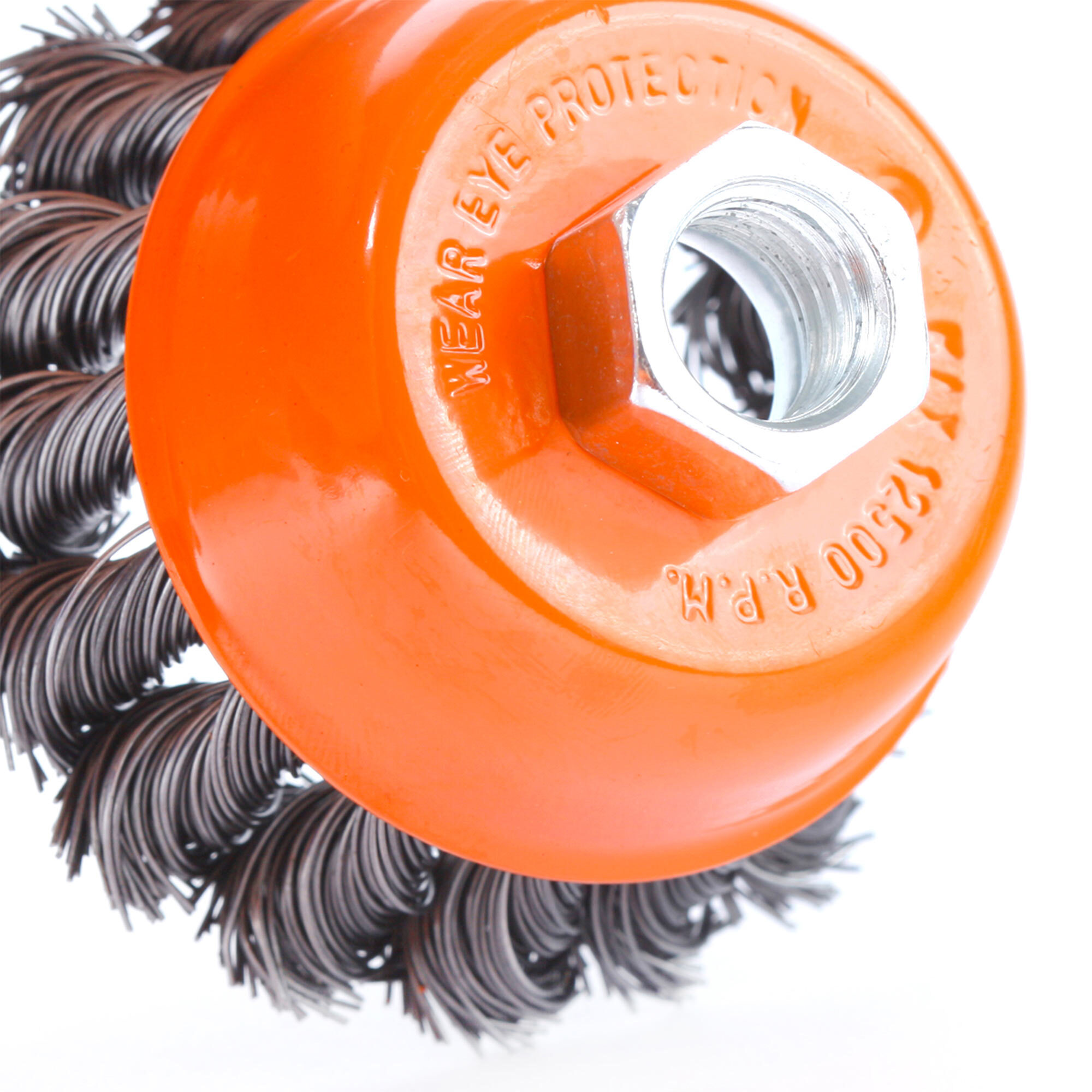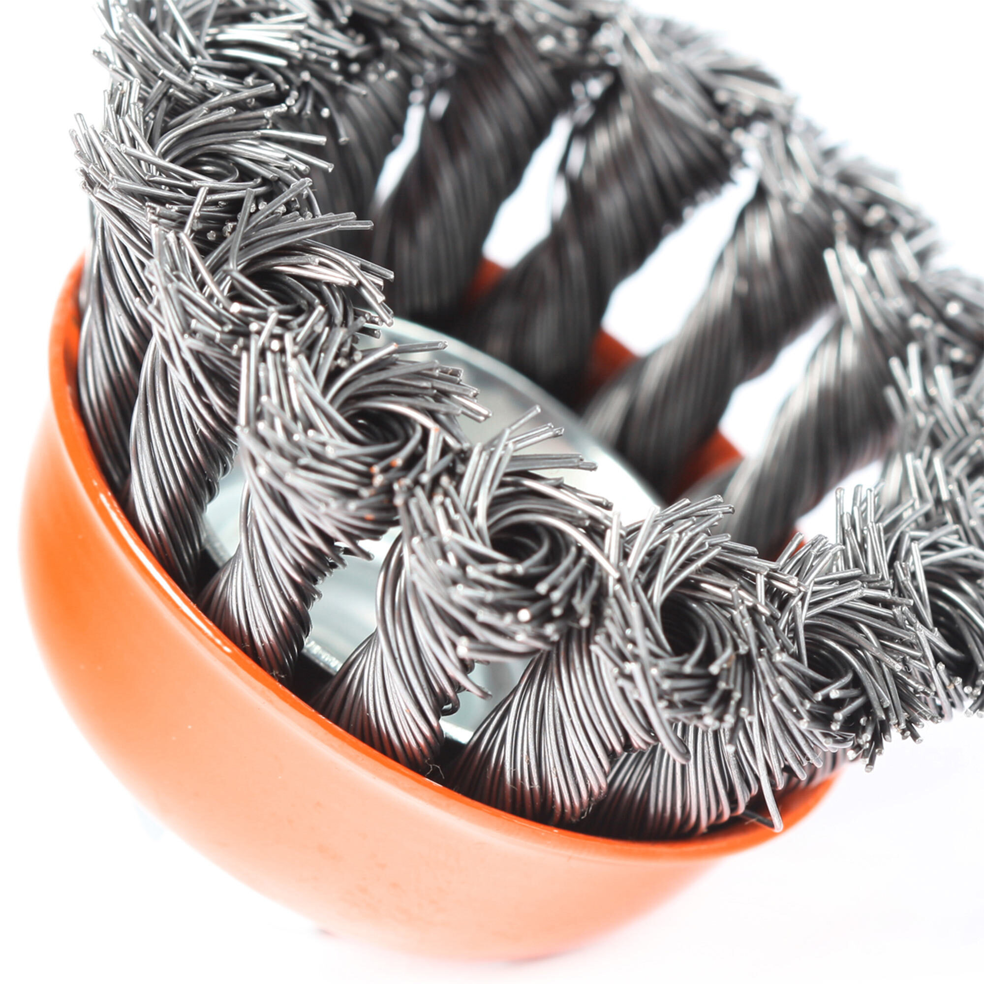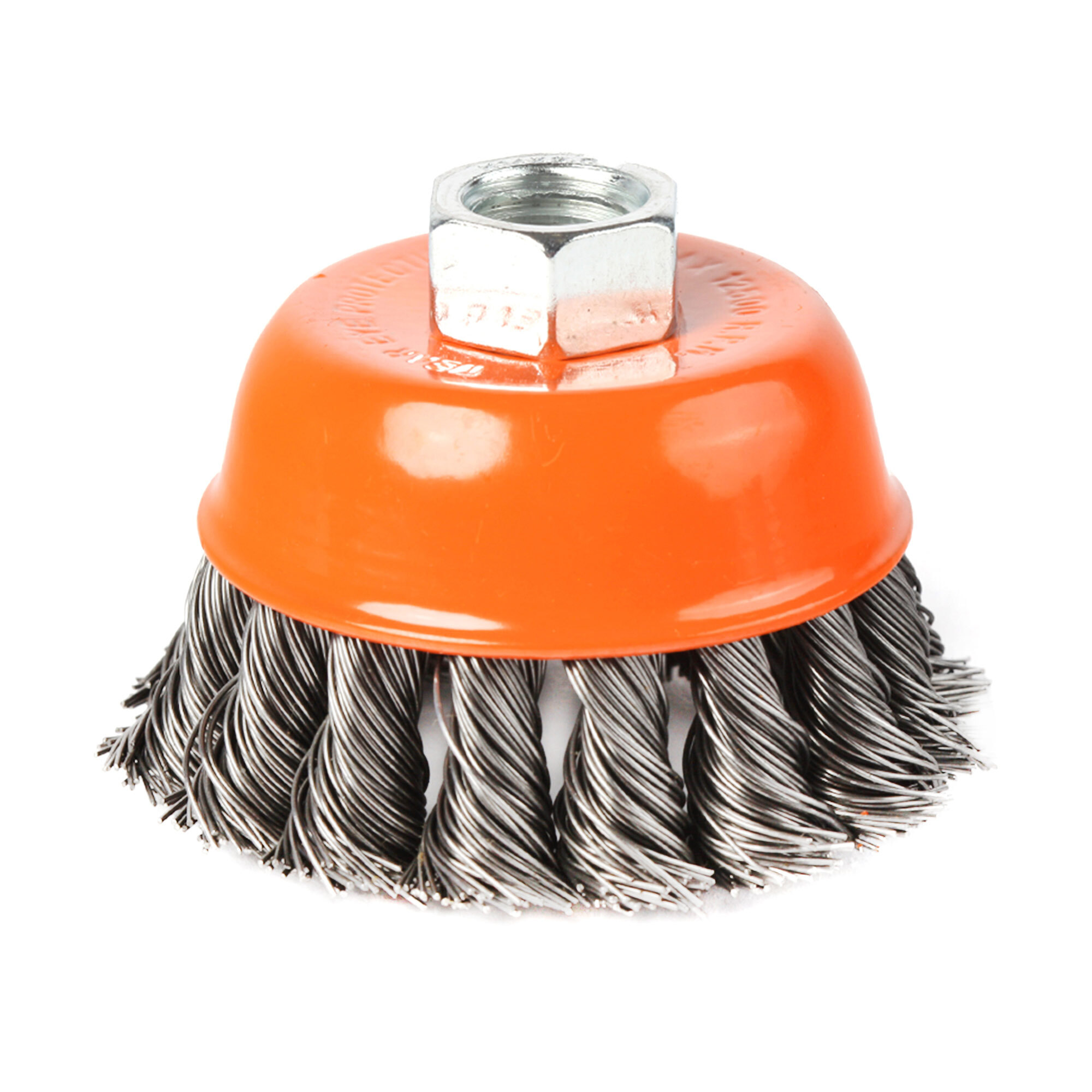 чашеобразная проволочная щетка для УШМ для снятия лака; краски; зачистки ржавчины; Наружный диаметр: 100мм; посадка: М14; стальная витая проволока; Высокая производительность; грубая зачистка