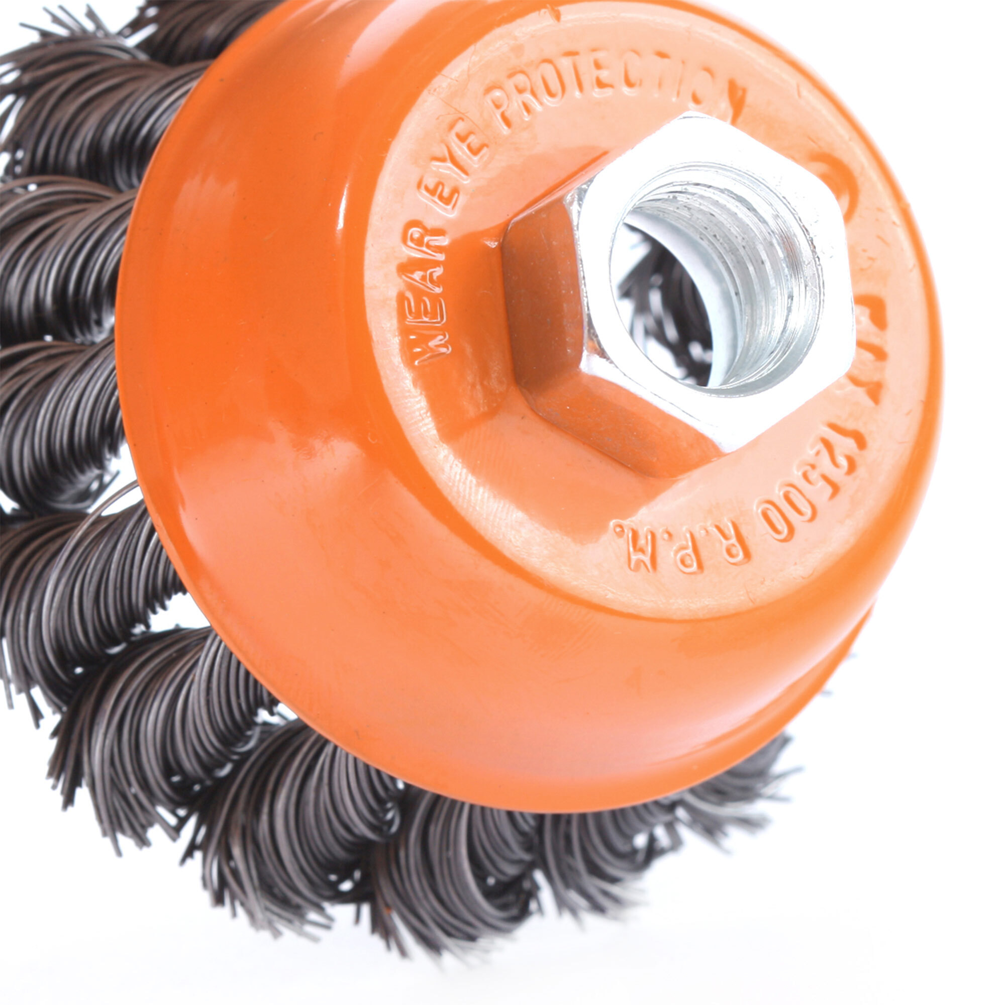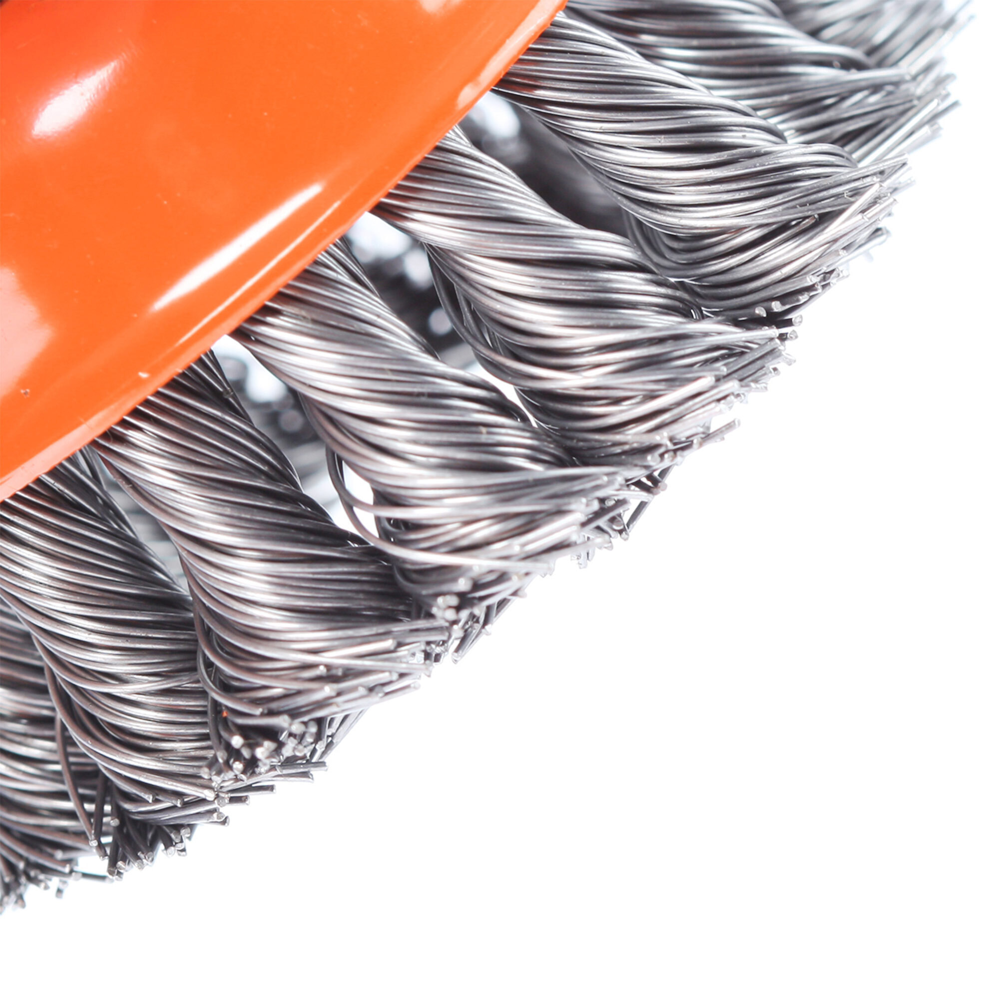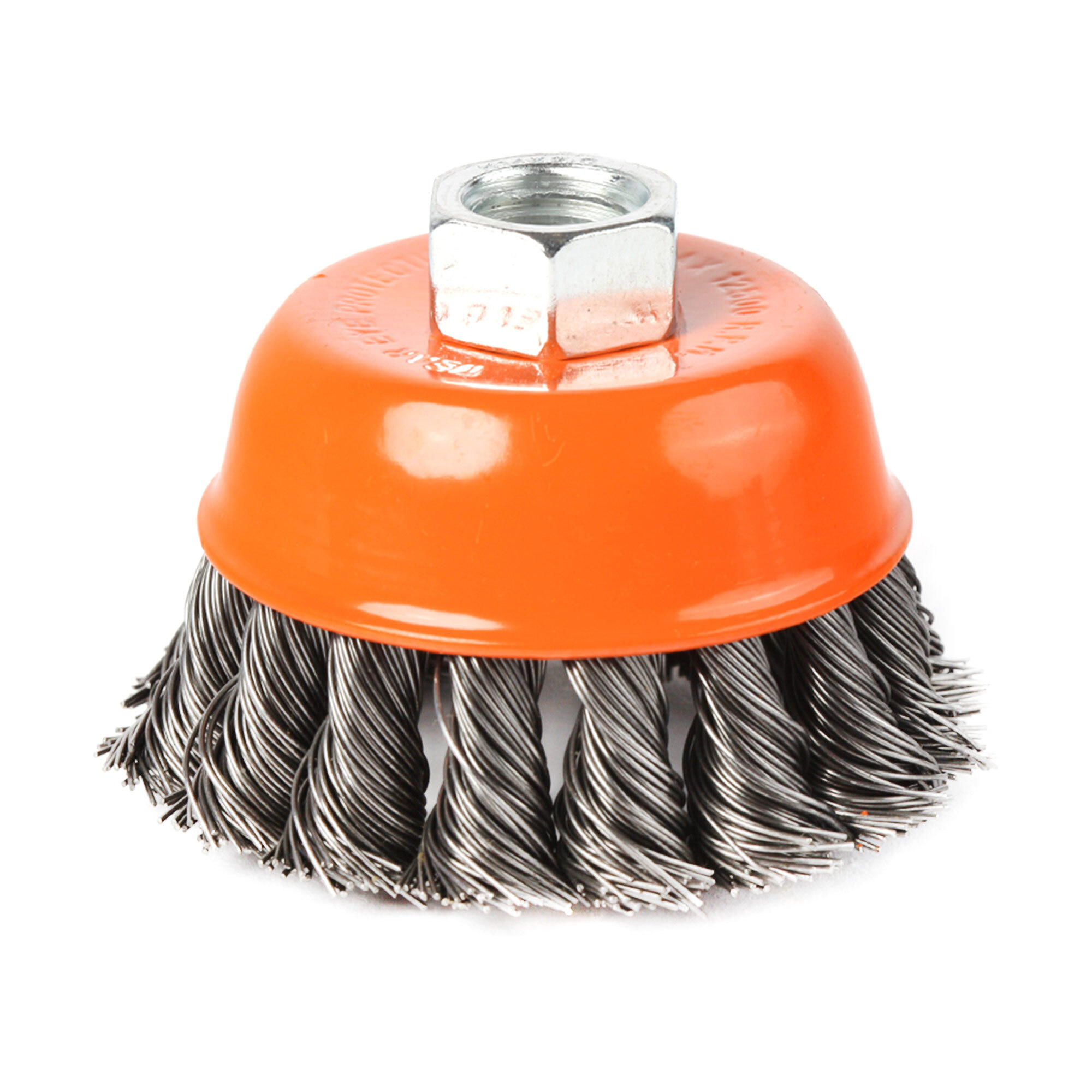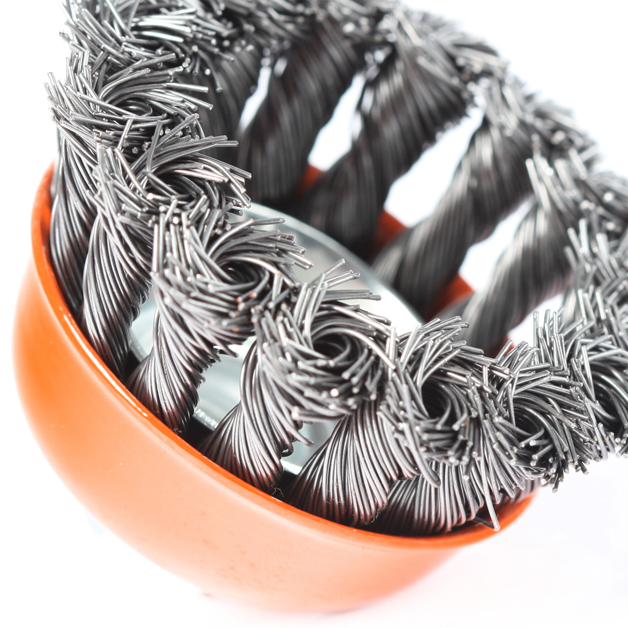 чашеобразная проволочная щетка для УШМ для снятия лака; краски; зачистки ржавчины; Наружный диаметр: 125мм; посадка: М14; стальная витая проволока; Высокая производительность; грубая зачистка
