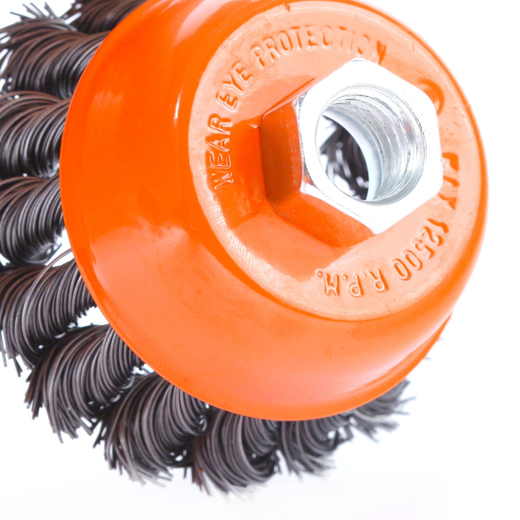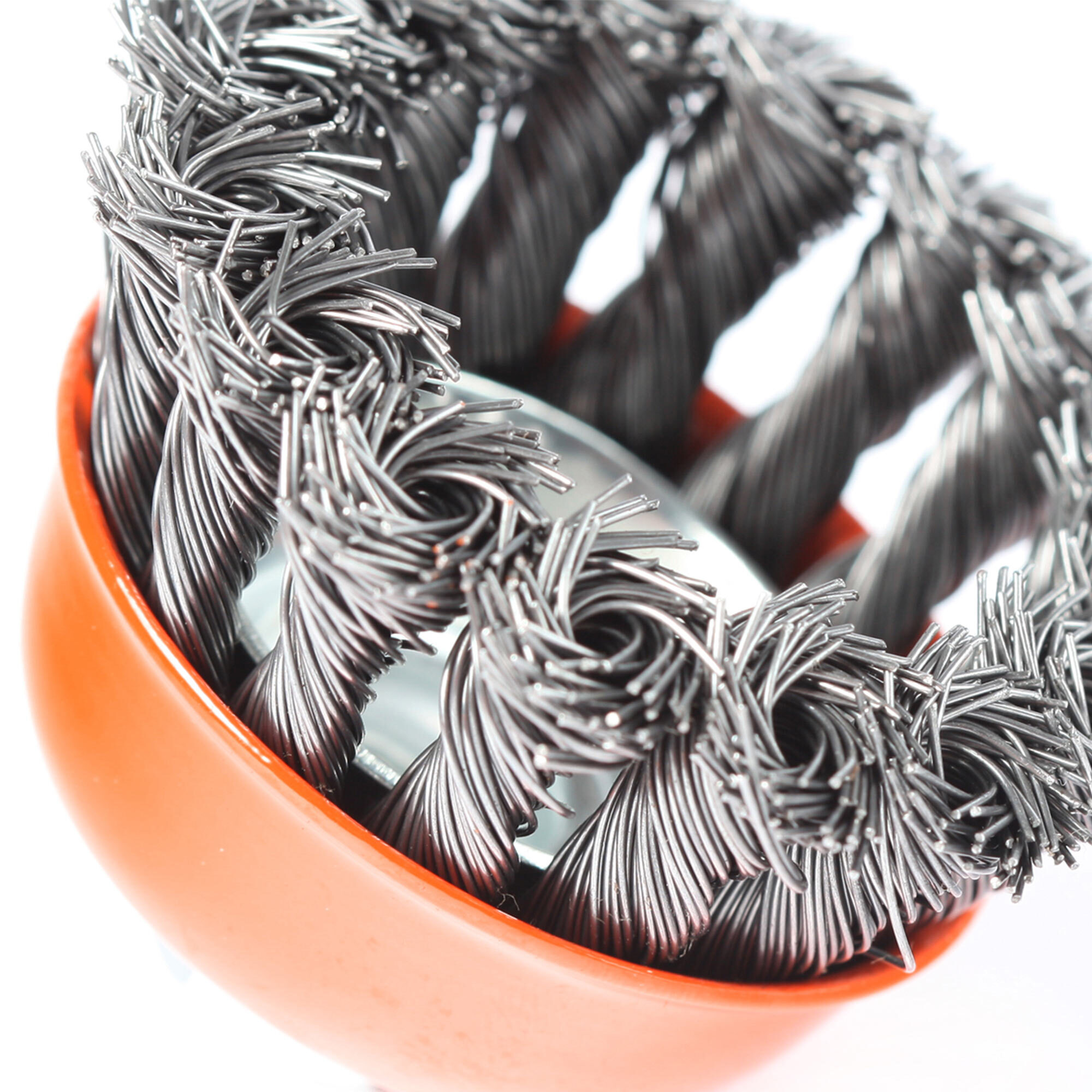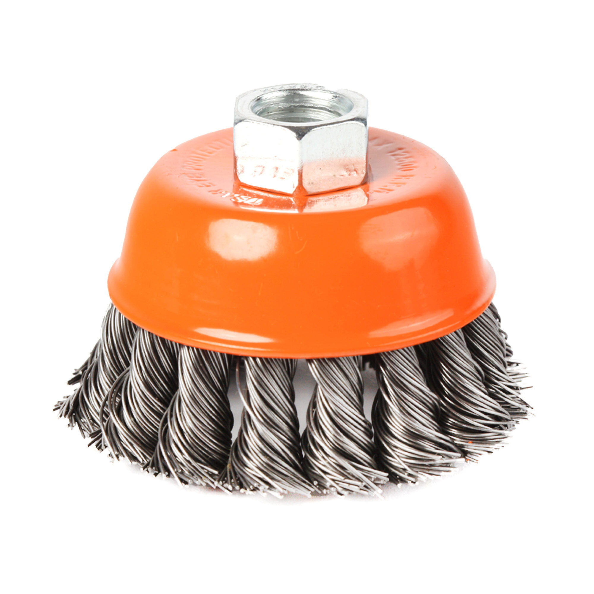 чашеобразная проволочная щетка для УШМ для снятия лака; краски; зачистки ржавчины; Наружный диаметр: 75мм; посадка М14; стальная витая проволока; Высокая производительность; грубая зачистка