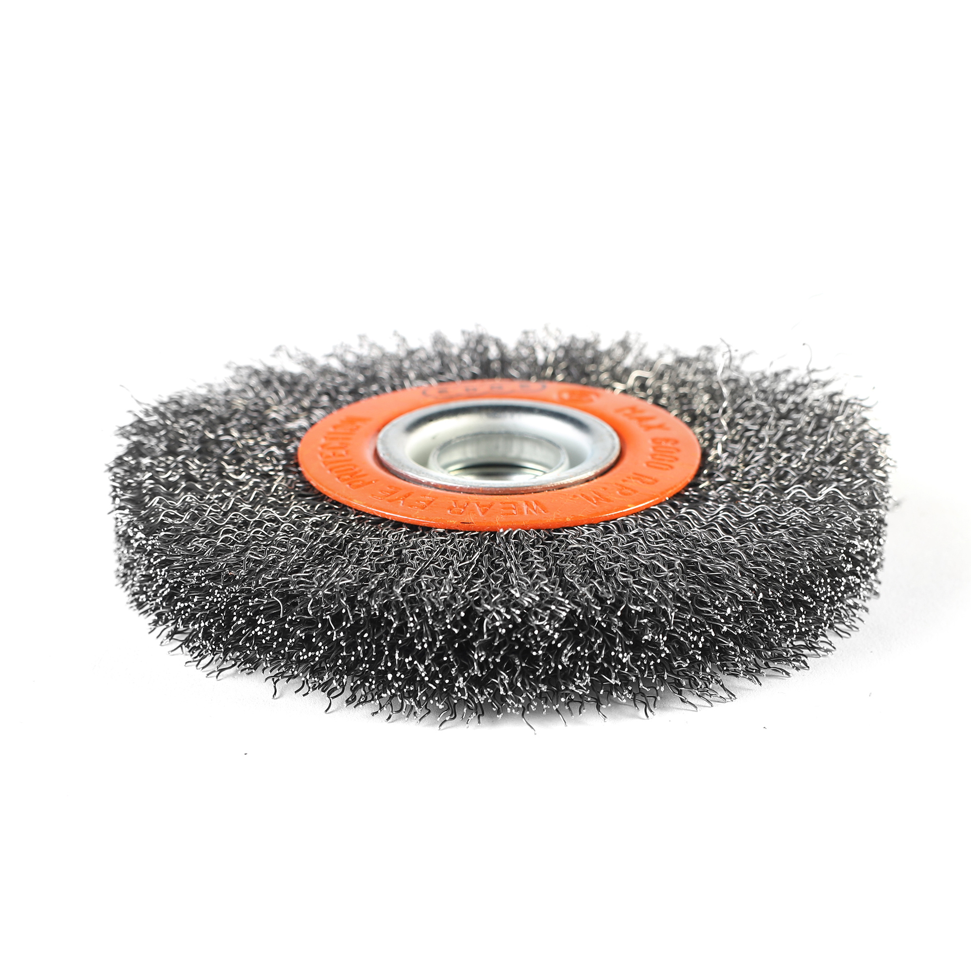 круглая проволочная щетка для точила для снятия лака; краски; зачистки ржавчины; Наружный диаметр: 125мм; посадка: 20мм; гофрированная проволока