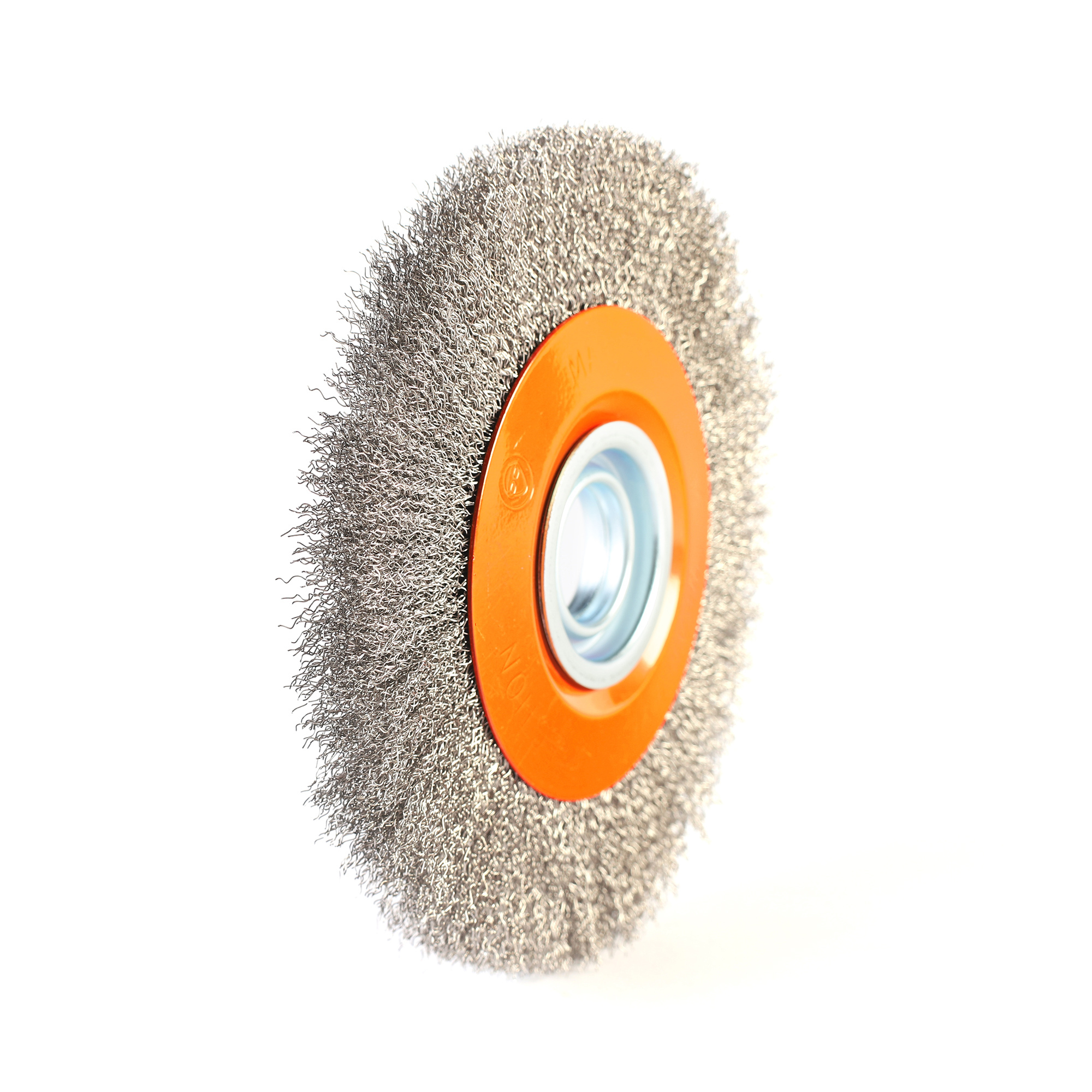круглая проволочная щетка для точила для снятия лака, краски, зачистки ржавчины. Наружный диаметр 175мм, посадка 32мм/30мм/25,4мм/20мм/16мм, гофрированная проволока