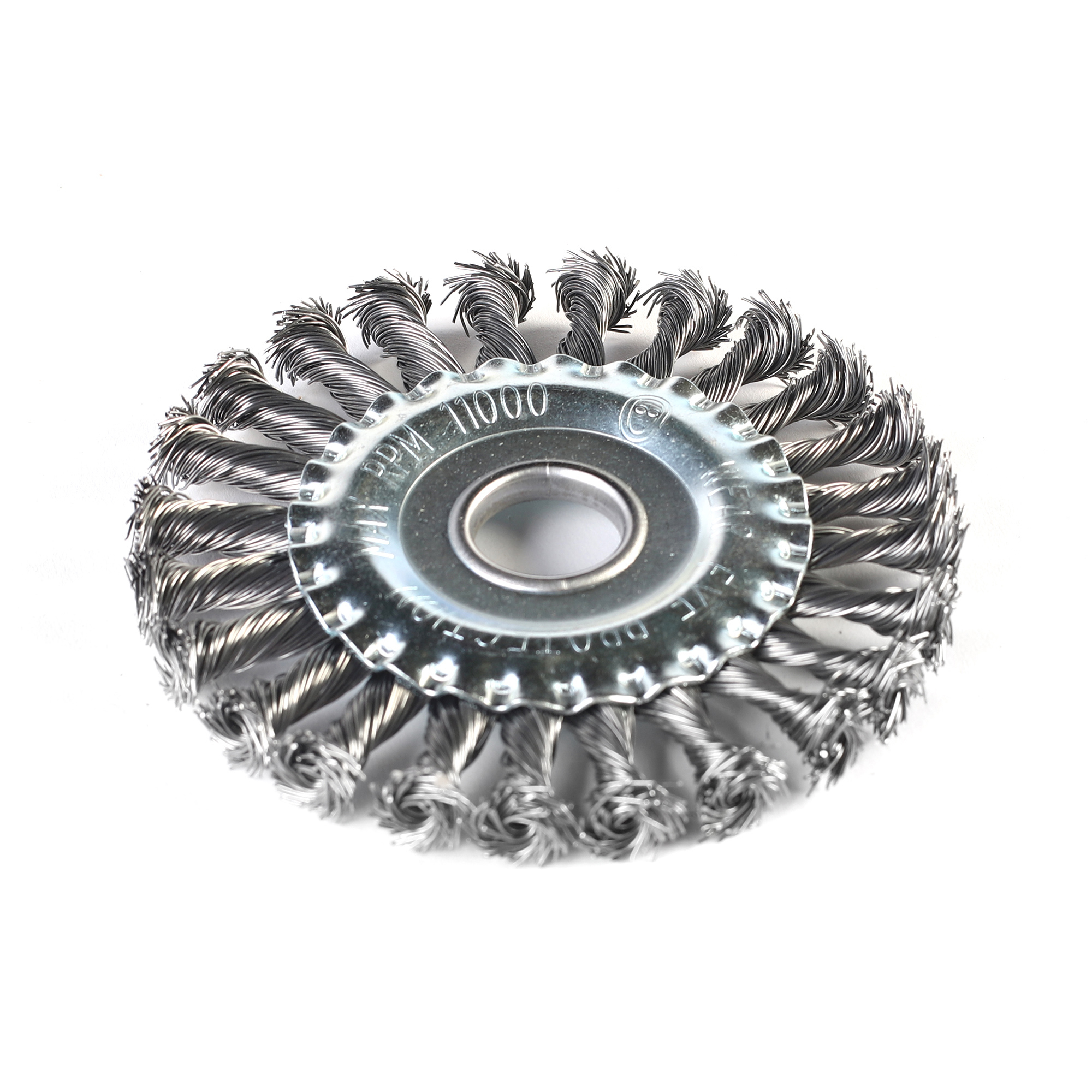 круглая проволочная щетка для УШМ для снятия лака; краски; зачистки ржавчины; Наружный диаметр: 125мм; посадка: 22.23мм; витая проволока; высокая производительность; грубая зачистка