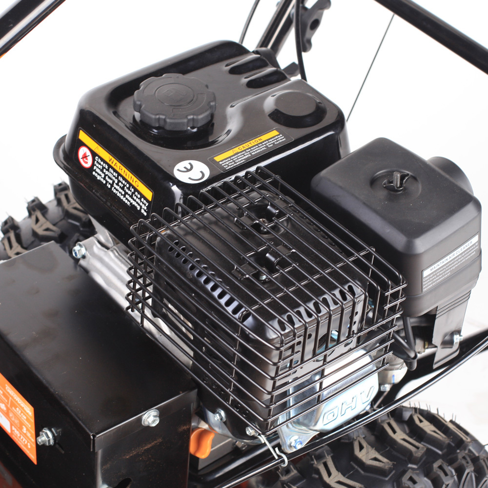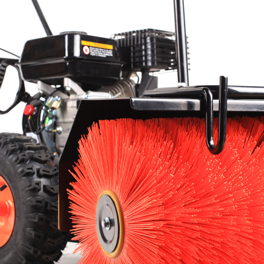 5.5 л.с, бак 3.6 л, 4-х тактный двигатель, ширина обработки 56 см, высота обработки 42 см, диаметр щетки 32 см, 4 вперед/2 назад+щетка