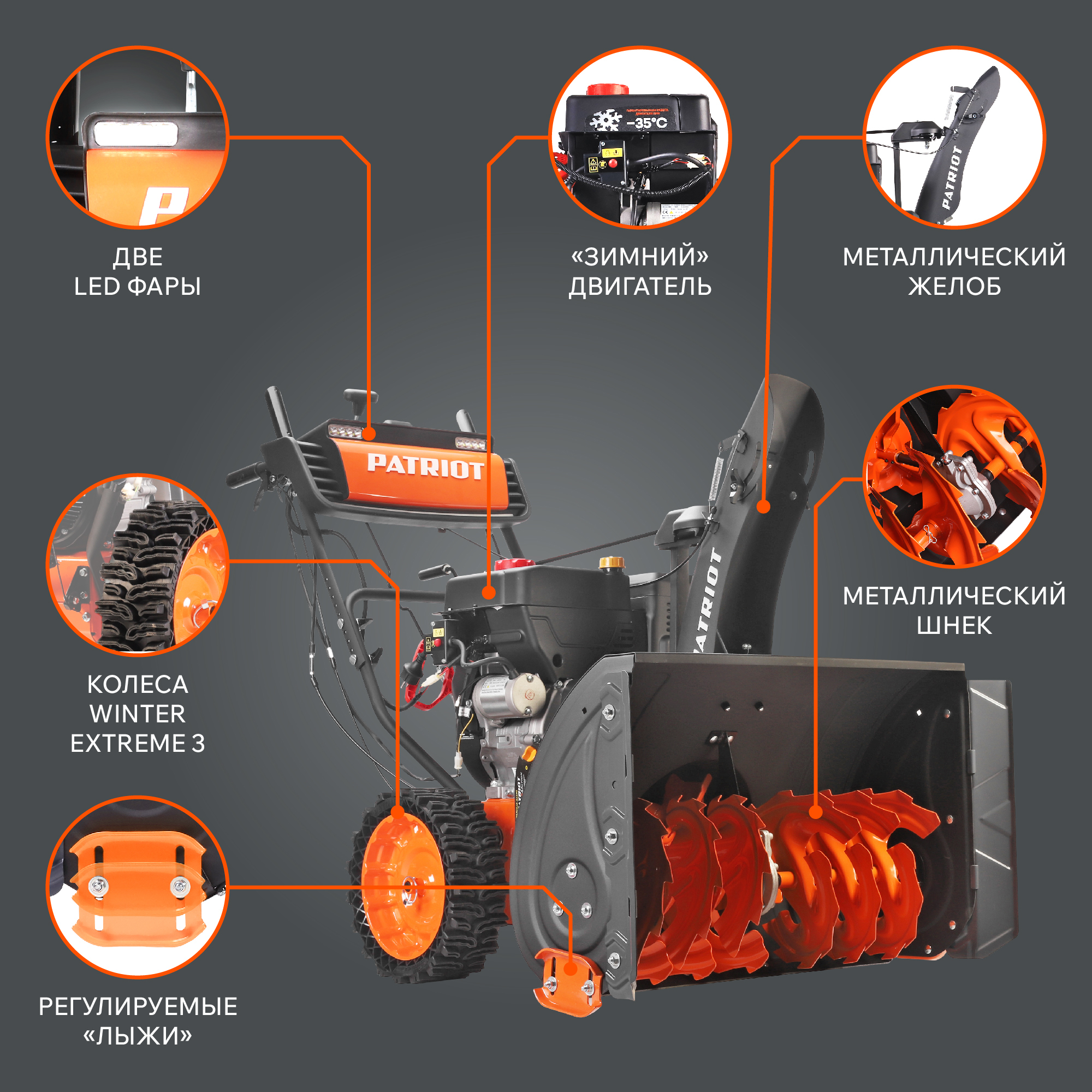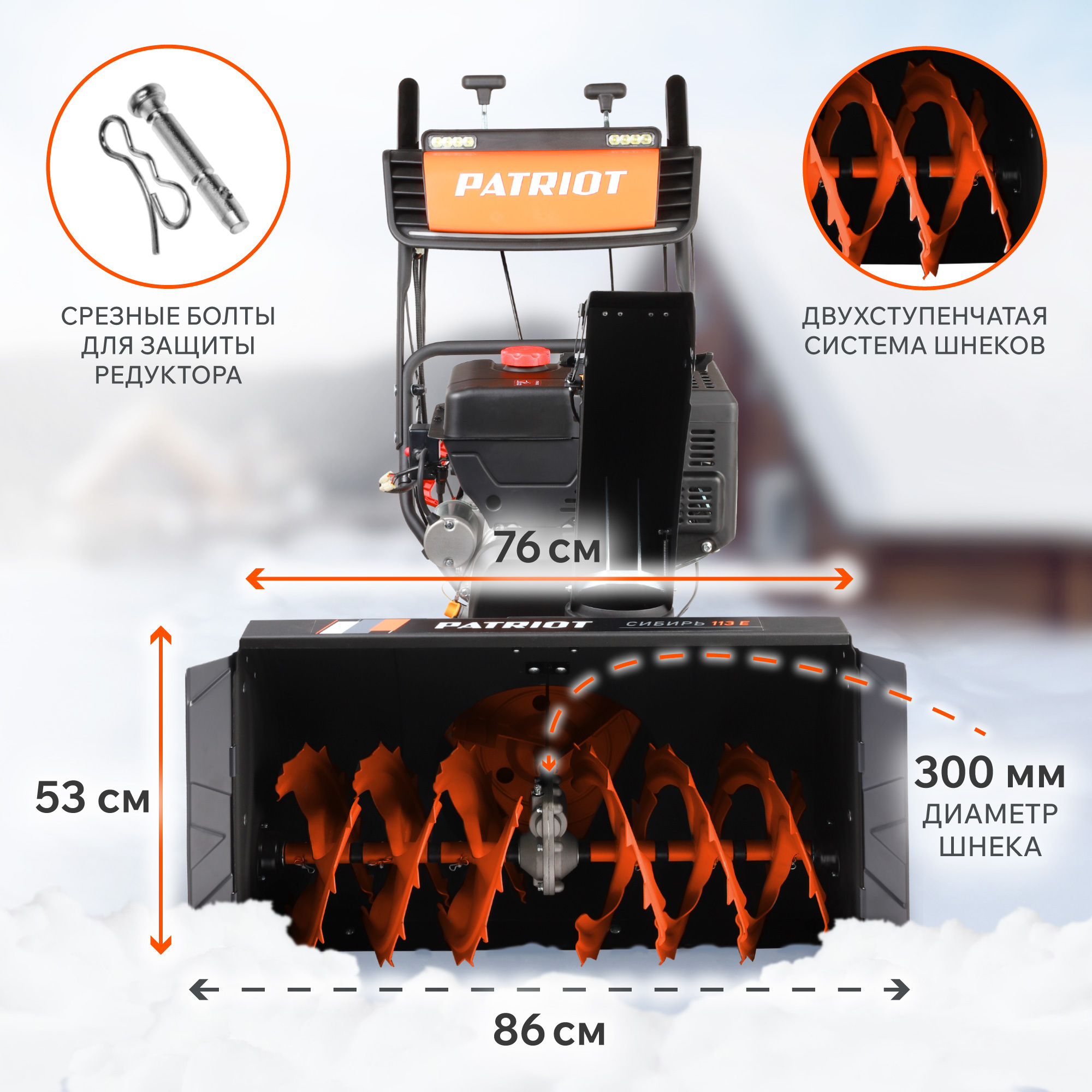 Мощный снегоуборщик PATRIOT Сибирь 113 Е подходит для уборки снега и расчистки снежных заносов в любых условиях. Высокий зубчатый шнек с агрессивным дизайном перемалывает любой вид снега, включая сырой и обледеневший. Система XTS расширяет возможности для уборки на 10%, увеличивая площадь и высоту захвата. Созданные для работы в зимних условиях колеса Winter Extreme 2 с гусеничным протектором гарантируют высокую проходимость и маневренность. Профессиональный двигатель мощностью 13 л.с. выдерживает морозы до -35 градусов, а функция электростарта позволяет запустить его по нажатию одной кнопки. Функция блокировки дифференциала для поворота\разворота на месте Для работы в темное время модель оснащена светодиодными фарами и подсветкой зоны работы двигателя. Все элементы управления вынесены на отдельную панель, дающую быстрый доступ ко всем его элементам.