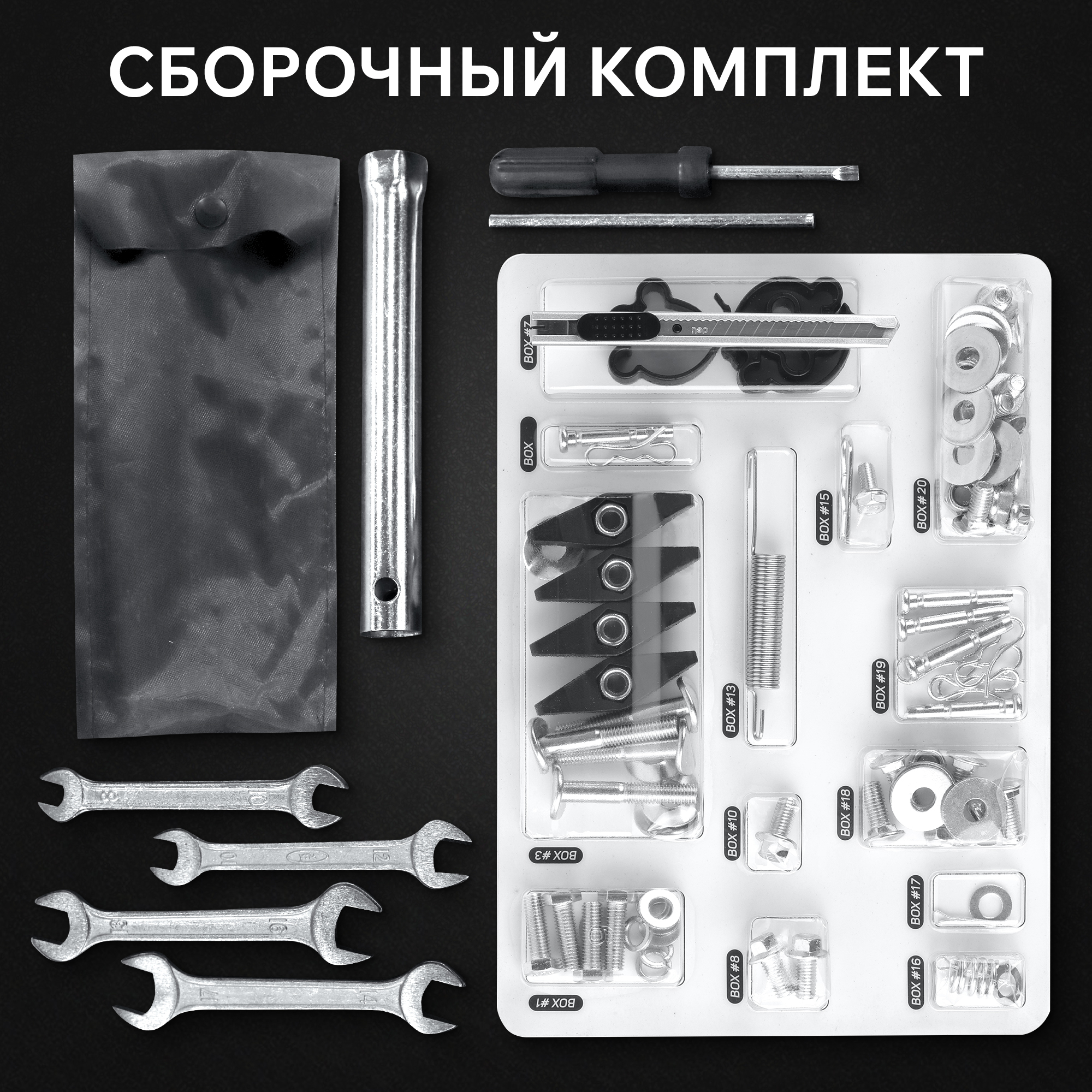 Снегоуборщик с установленным ковшом и гусеницами; Верхняя рукоятка; Нижняя рукоятка; Желоб; Опорные лапы: 2 шт.; Ключ свечной; Комплект метизов для сборки; Инструкция по эксплуатации