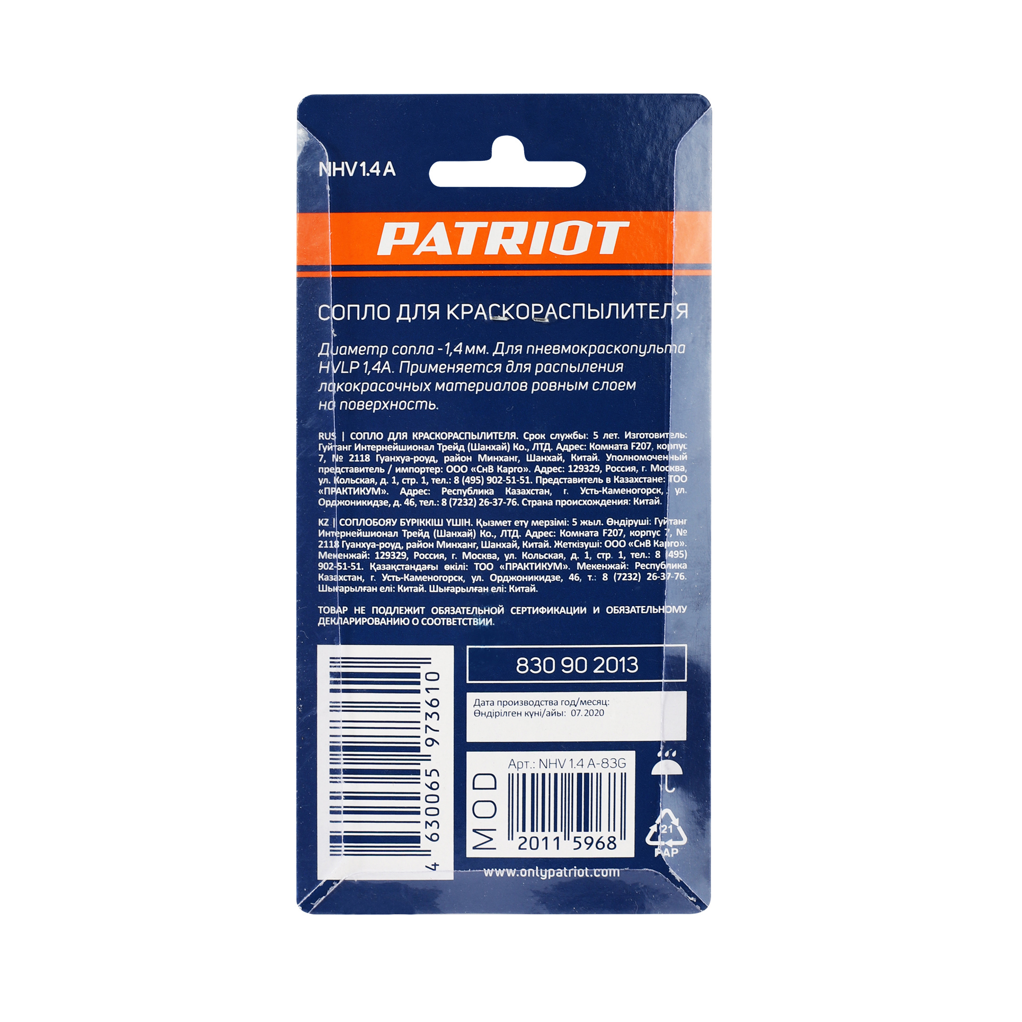 Ремкомплект PATRIOT NHV 1.4 A для краскопультов, включающий в себя сменное сопло, иглу и распыляющую головку. Предназначен для модели HVLP 1,4 A.