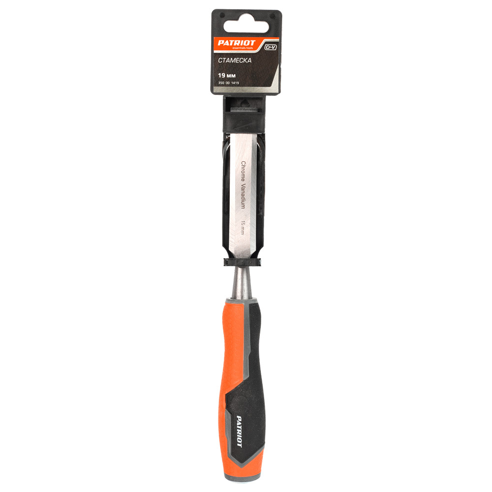 Стамеска PATRIOT CHP-19 для обработки деревянных поверхностей, нанесения на них узоров и др. Стержни выполнены из устойчивой к коррозии хромованадиевой стали. Композитная рукоять защищает от скольжения, а стальной затыльник позволяет снизить нагрузку при работе с молотком.