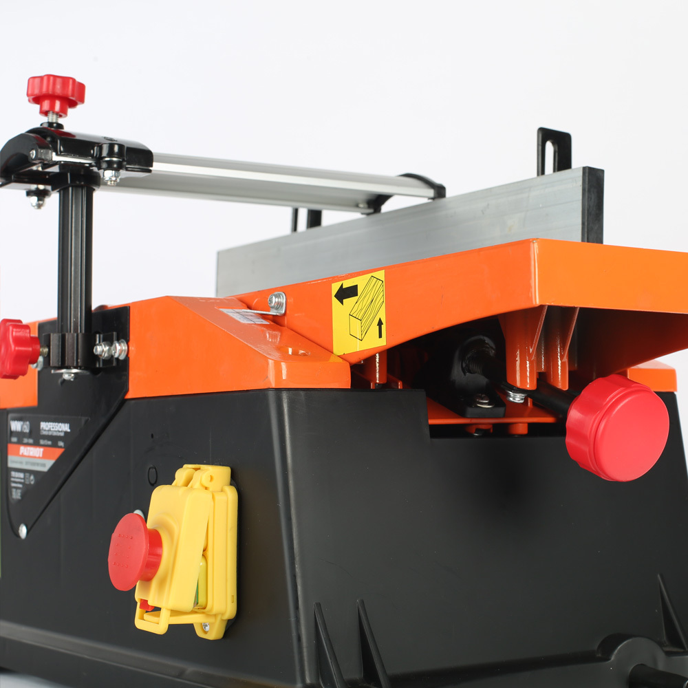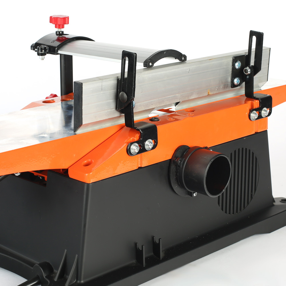 Строгально-фуговальный станок применяется в небольших деревообрабатывающих цехах, а также в частных мастерских. В корпусе устройства расположены отверстия для отвода теплого воздуха из системы, что предотвращает перегрев двигателя. Устойчивость станка на поверхности обеспечивает широкое опорное основание.