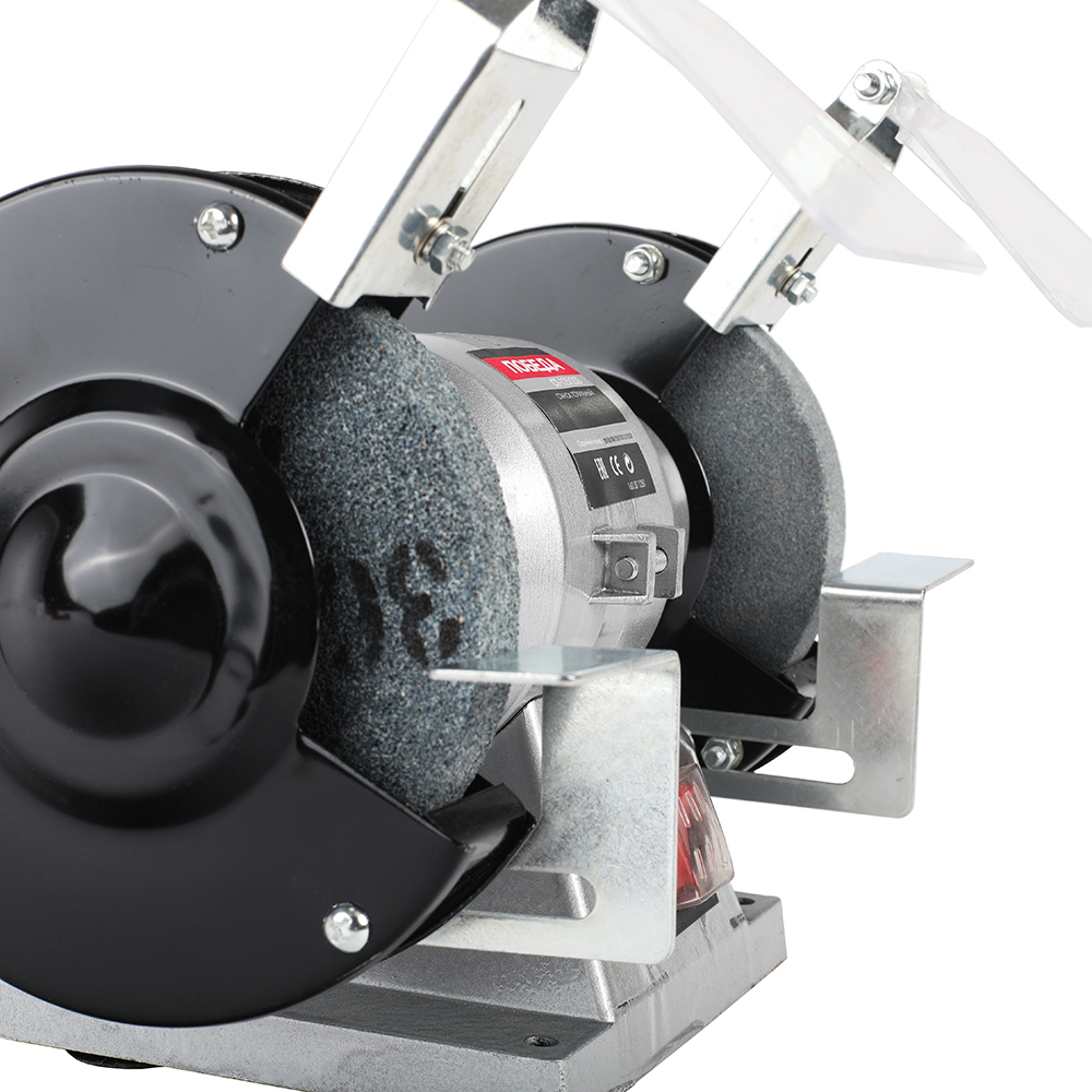 Станок точильный СТ-125/250 предназначен для заточки таких инструментов, как топоры, ножи, долота, сверла, а также для шлифовки и удаления неровностей с металлических поверхностей. Два прозрачных экрана препятствуют попаданию искр в оператора. В основании имеются отверстия для крепления на верстаке. Станок прост в использовании и не требует специального обслуживания.
