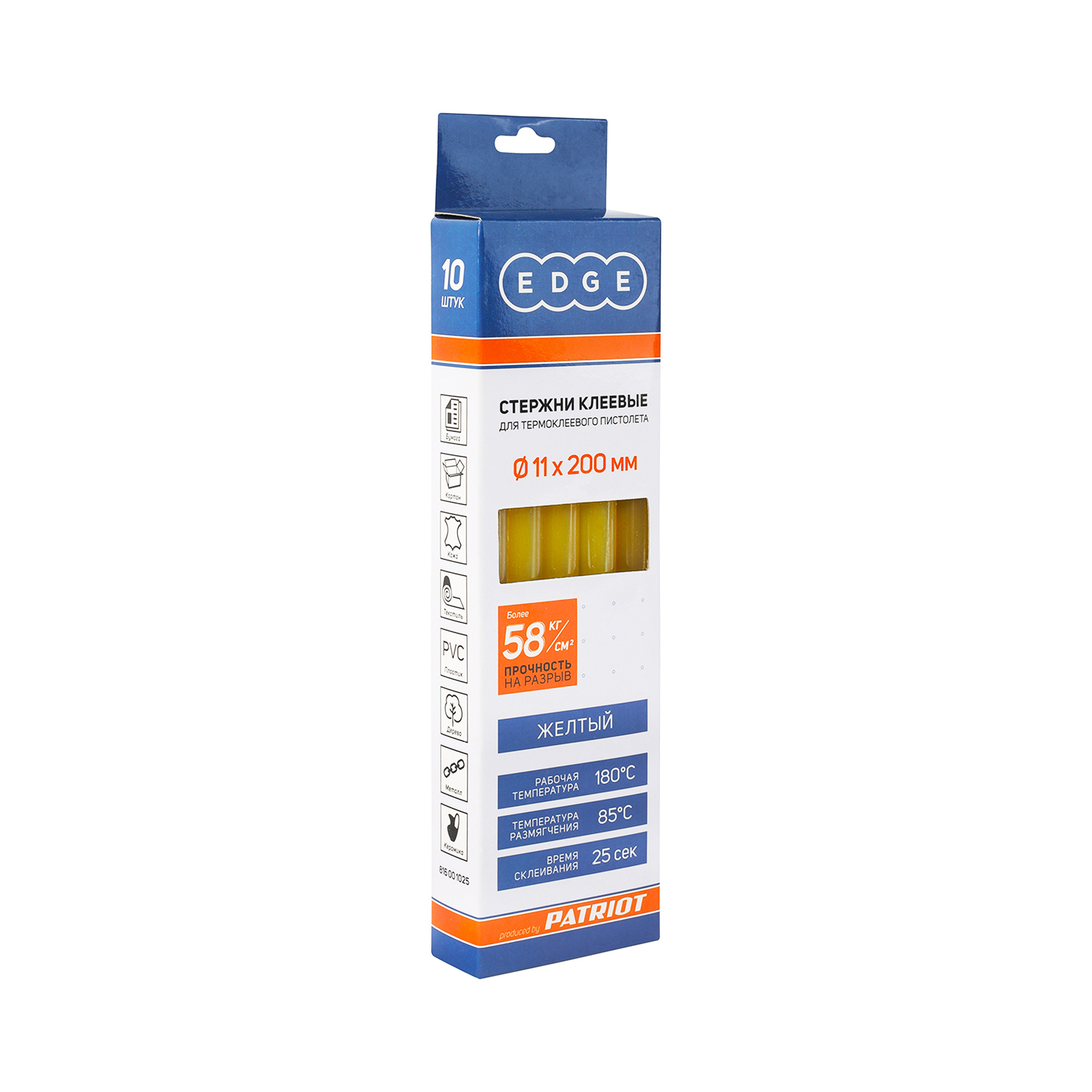 длина 200 мм, 180 °С рабочая температура, стержень 11 мм, желтый 10 шт.