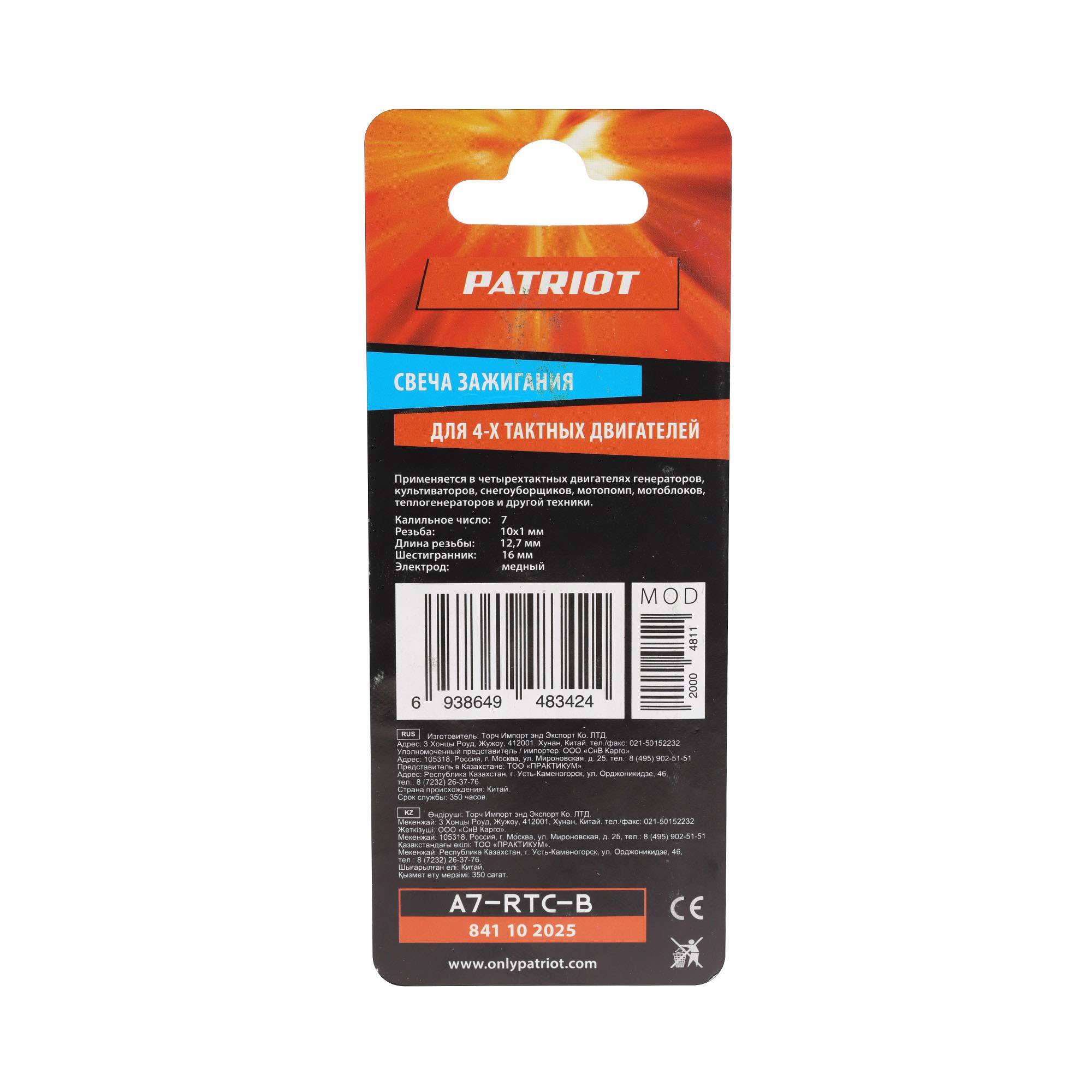 длина резьбы 12.7 мм, размер резьбы M10х1, 16 мм шестигранник, калильное 7, для 4-х тактных двигателей