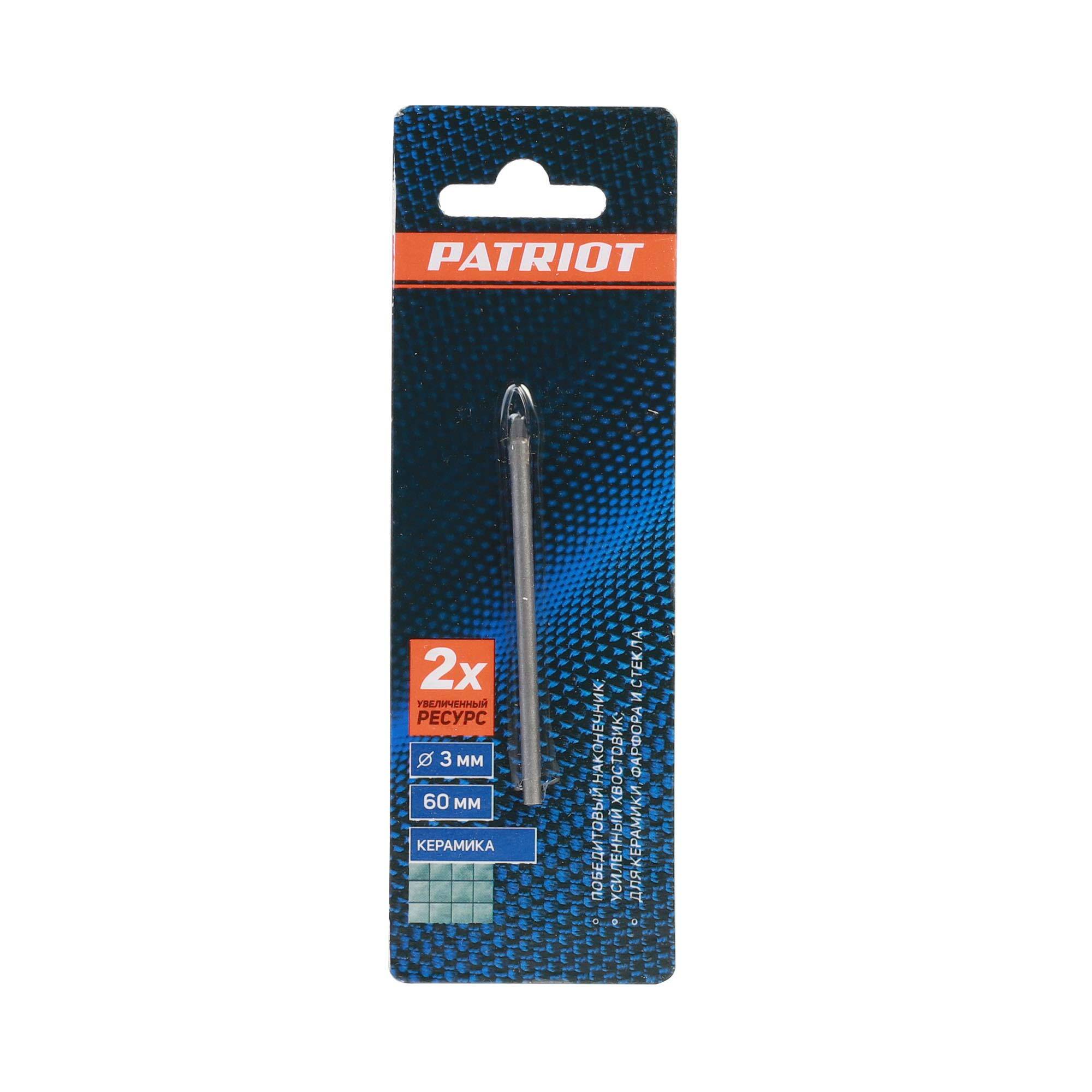 Наружный диаметр: 3 мм; Длина сверла: 60 мм; Обрабатываемый материал: керамическая плитка, стекло