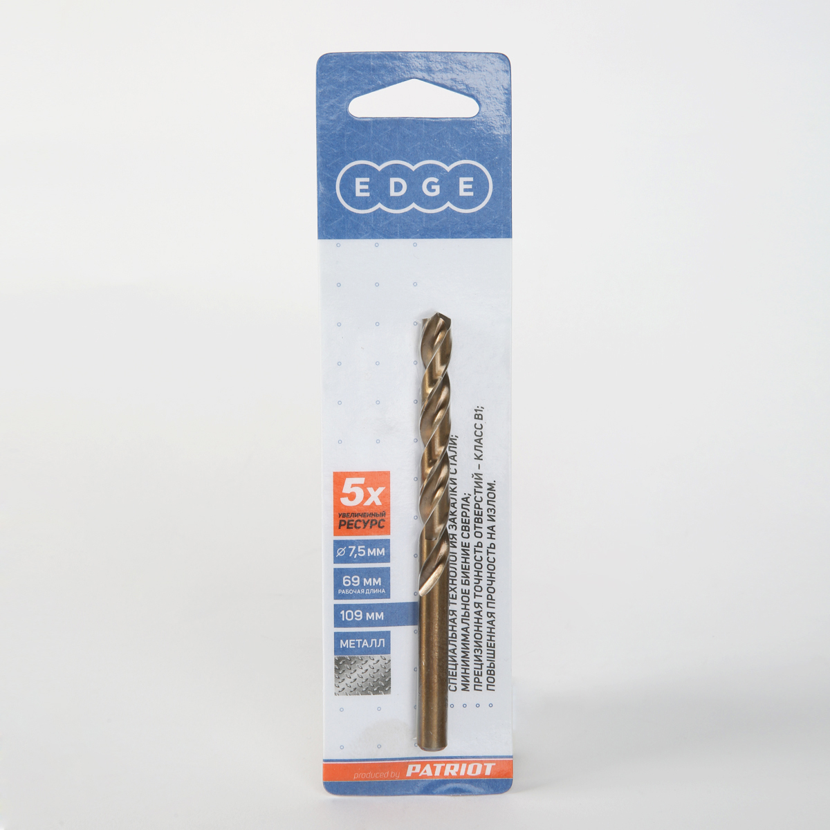Наружный диаметр: 7,5 мм; Длина сверла: 109 мм; Рабочая длина: 69 мм Обрабатываемый материал: металл