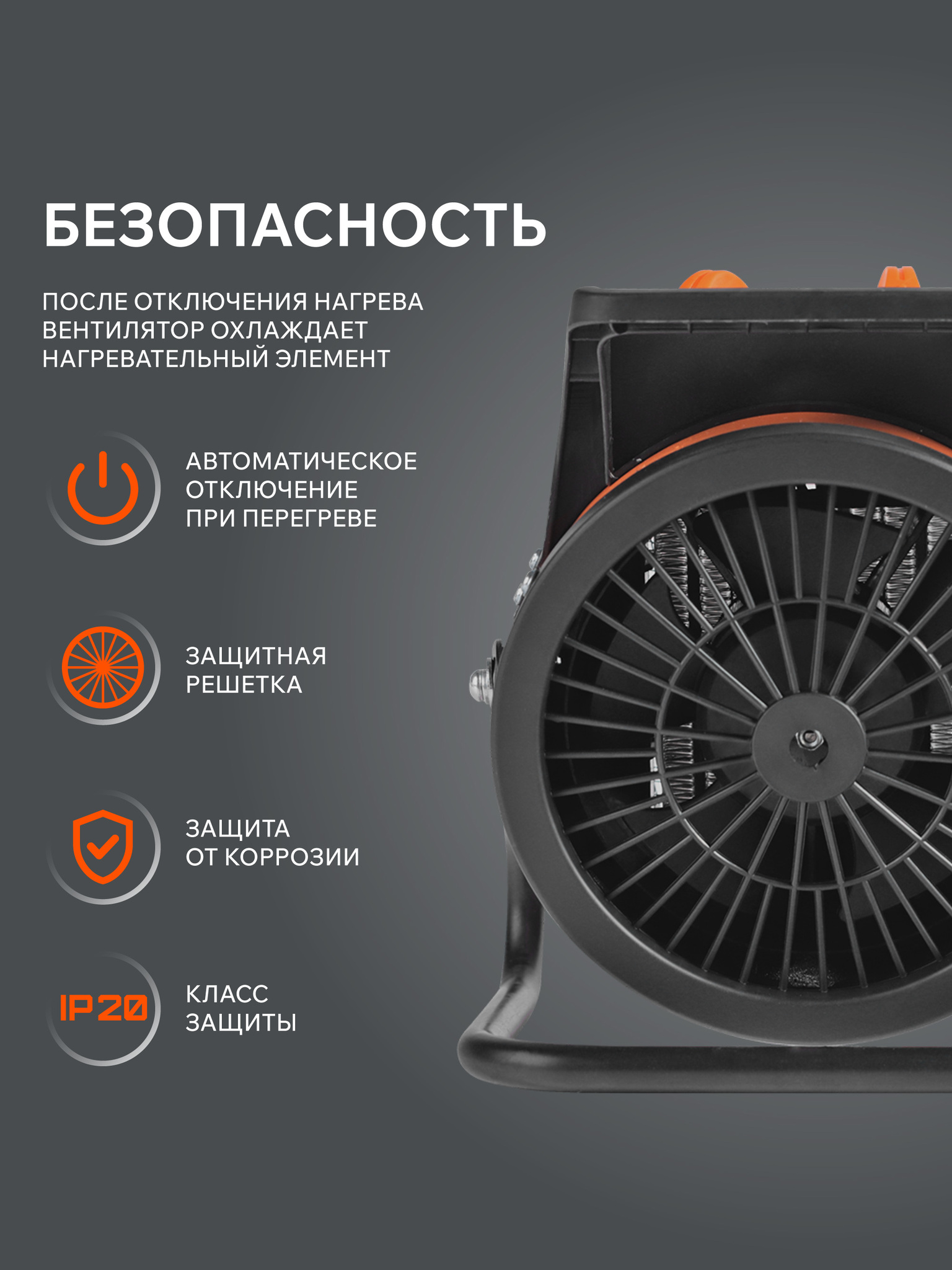 2000 Вт, 160 м3/ч, площадь 30 м2, керамический РТС, терморегулятор