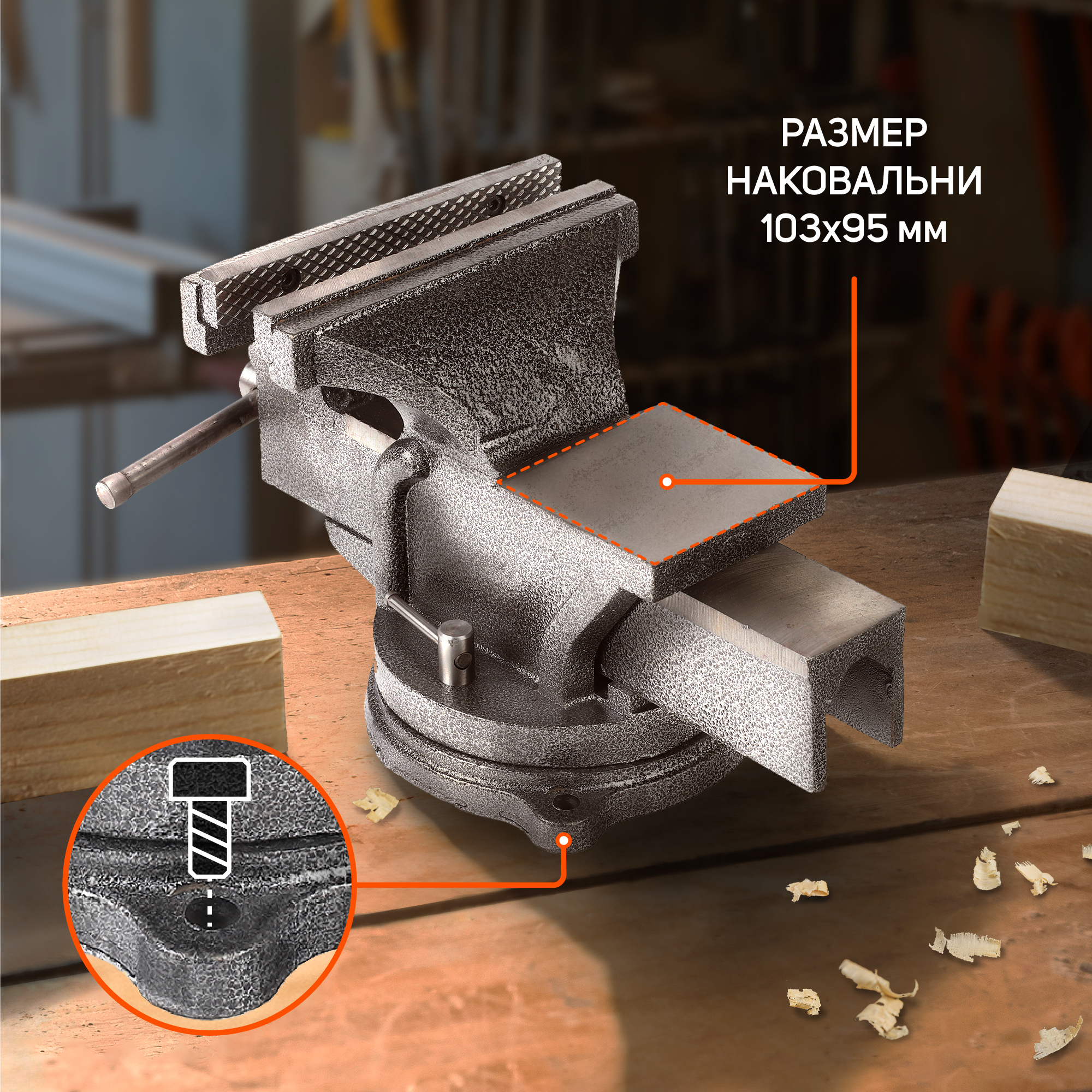 - Увеличенная наковальня на корпусе тисков для выполнения различных слесарных работ