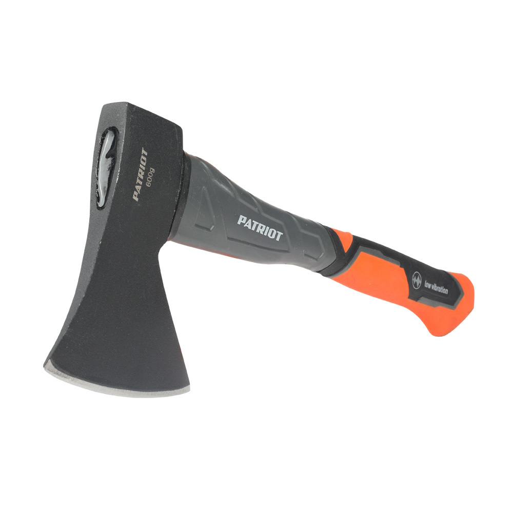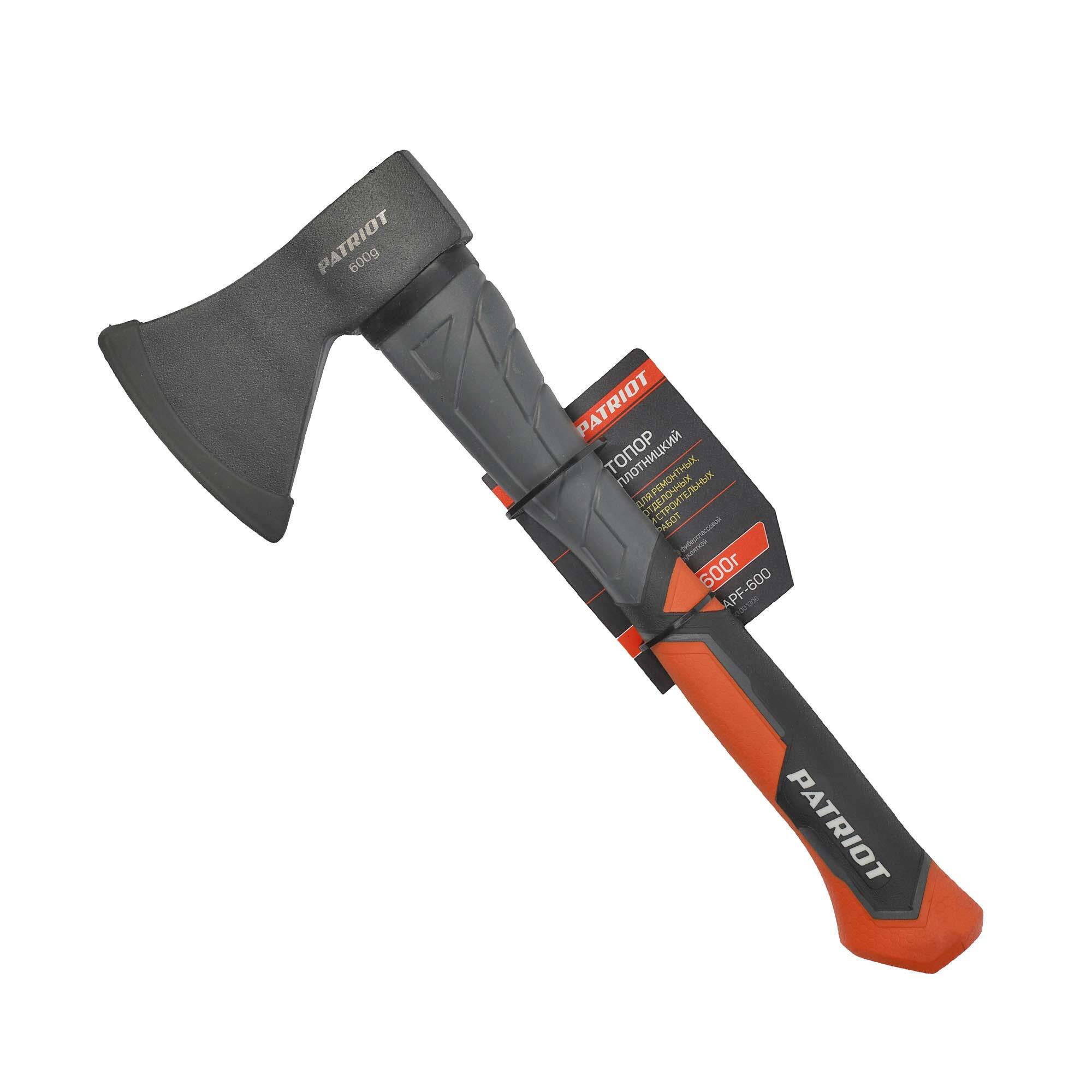 Топор универсальный плотницкий PATRIOT APF 600 для рубки небольших деревьев и ветвей. Клинок выполнен из закаленной стали с антикоррозийным покрытием. Фиберглассовая прорезиненная рукоятка не скользит в руках и гасит вибрации от ударов.