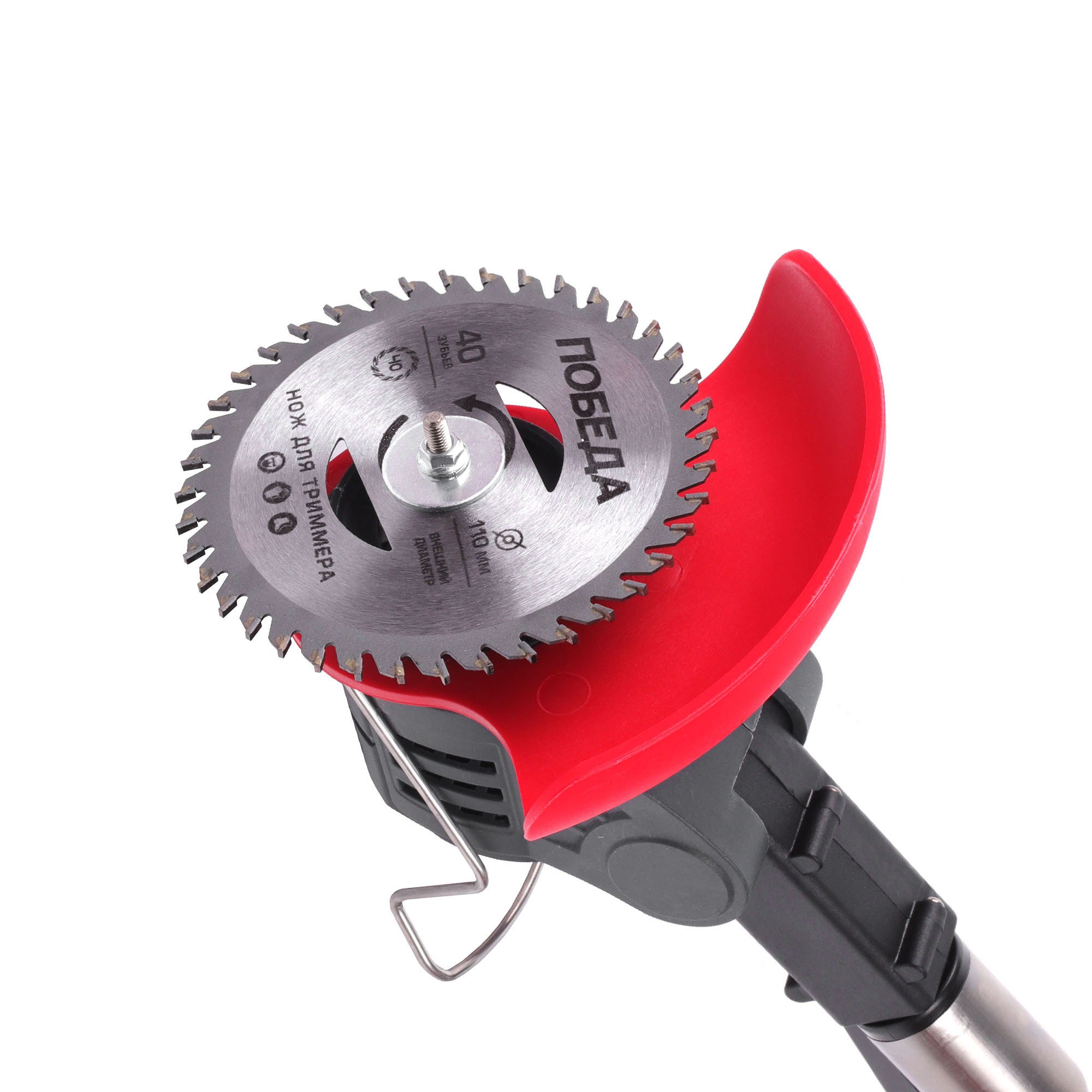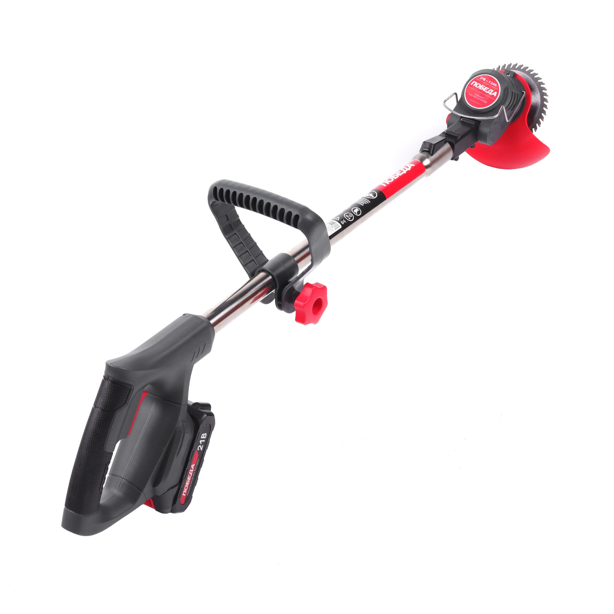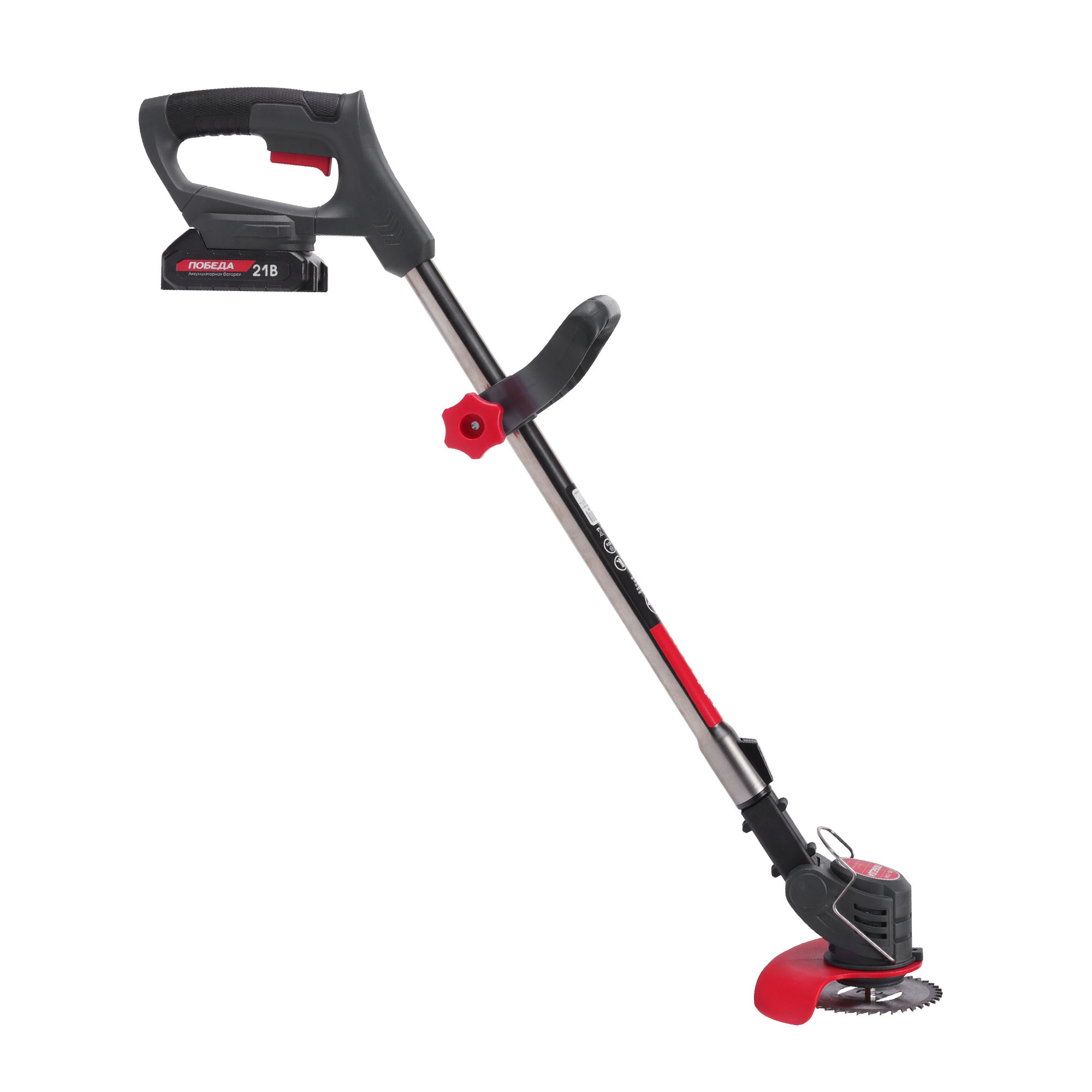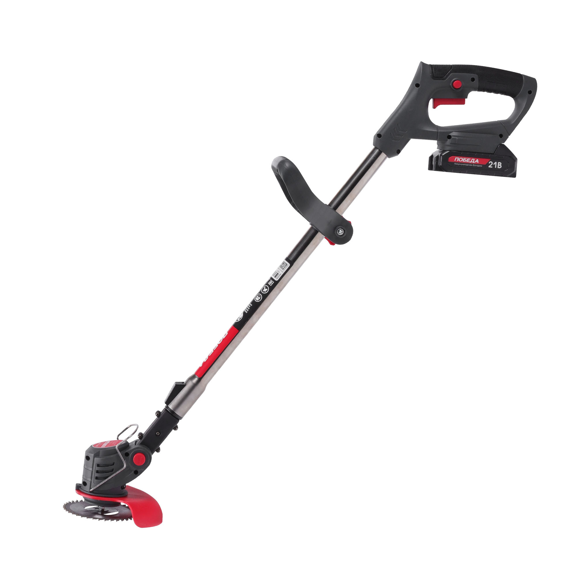 Очень лёгкий автономный триммер с возможностью срезания мелких веток металлическим диском с твердосплавными зубьями. 10 сменных пластиковых ножей для кошения травы в комплекте. Готов к работе сразу (в комплекте два мощных аккумулятора 21В, 1,5Ач и зарядное устройство).
