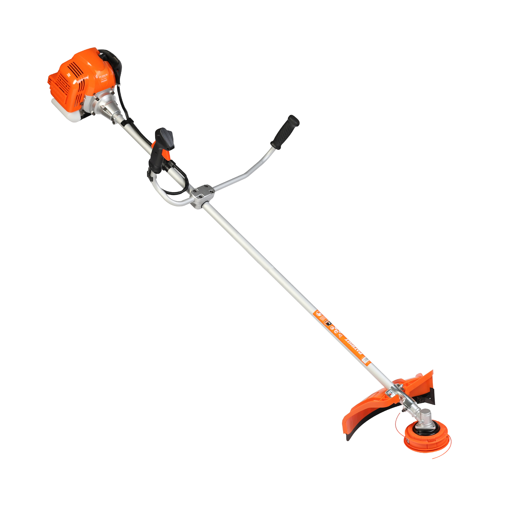 1.8 л.с, 33 см.куб, бак 0.7 л, ширина скашивания 460 мм, леска диаметром2.4-3 мм, нож диаметром255 мм, посадочный диаметр М10х1.25LH, 28 мм диаметр штанги, 2-х тактный двигатель, легкий старт, неразборная штанга, U-образная рукоятка, жесткий вал, антивибрационная система