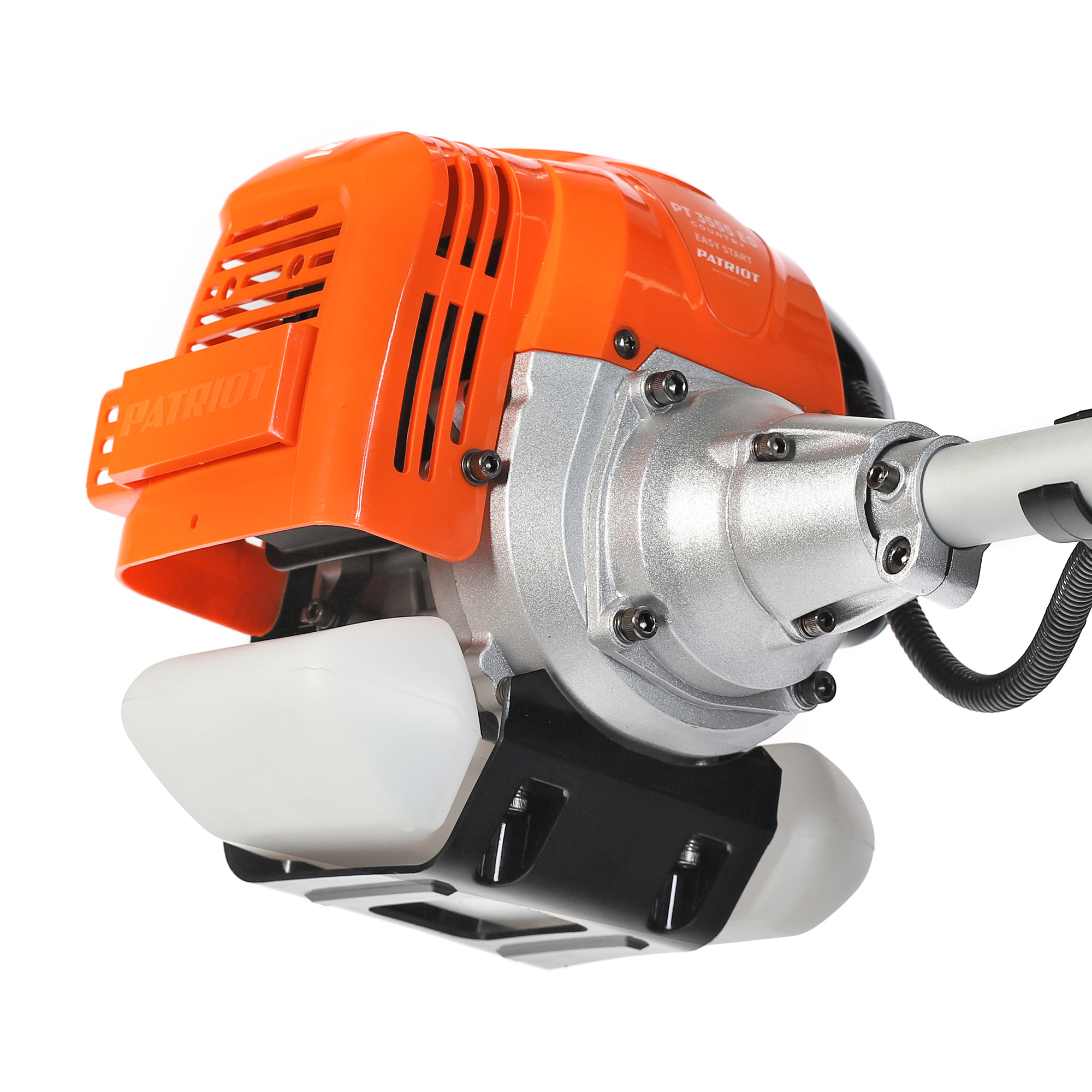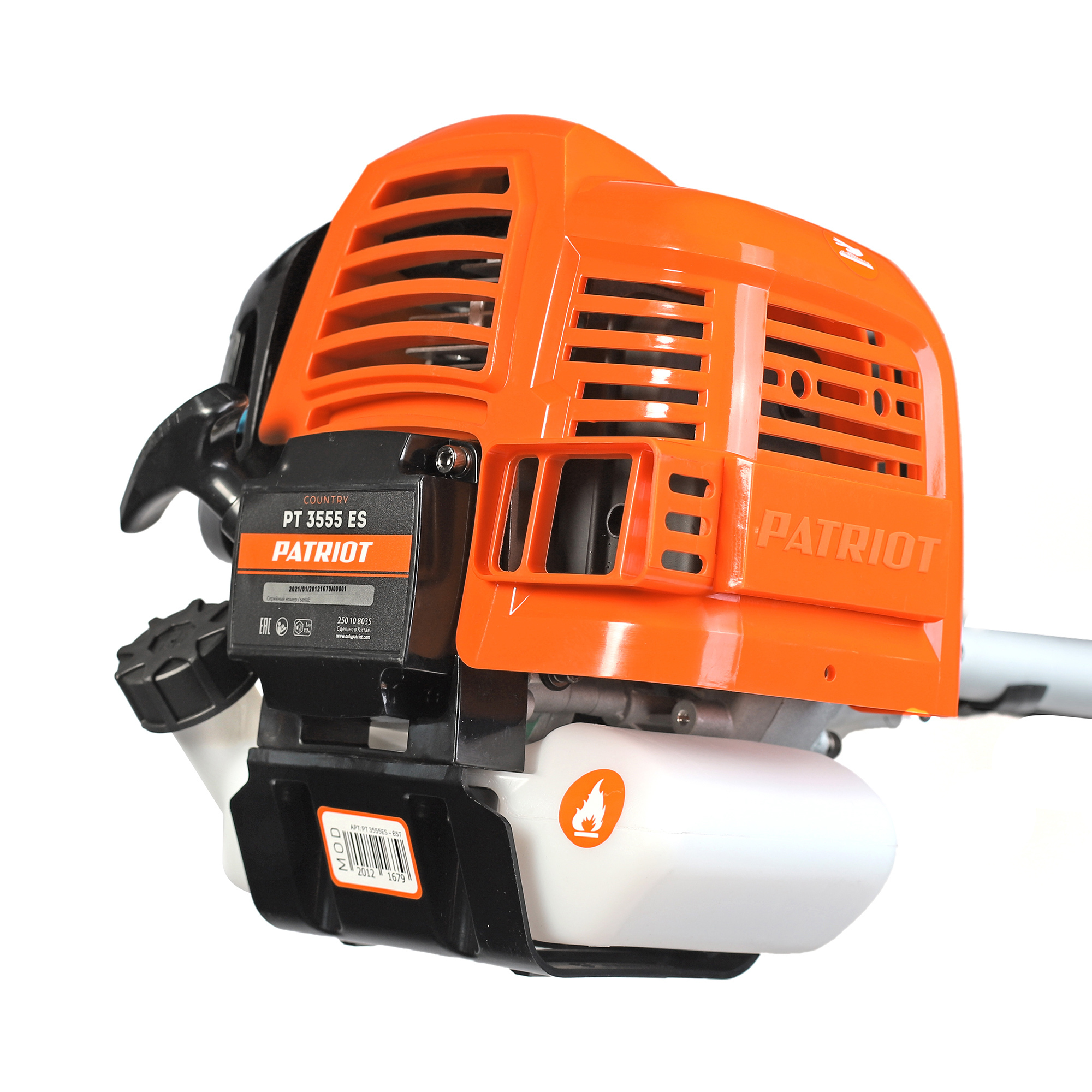 Специальный 4х-лопастной нож бензинового триммера с неразборной штангой PATRIOT PT 3555ES Country предотвращает разлет ядовитого сока и частей борщевика и амброзии.