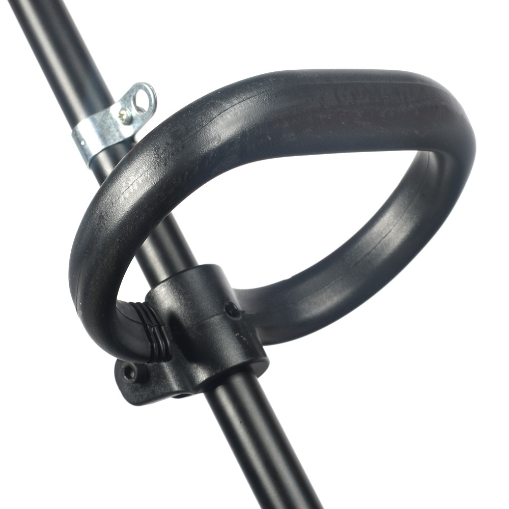 1000 Вт, ширина скашивания 46 см, диаметр лески 2-2.4 мм, диаметр ножа 230 мм, посадочный диаметр М10х1.25L, разборная штанга, жесткий вал, D-образная рукоятка, защита от перегрева