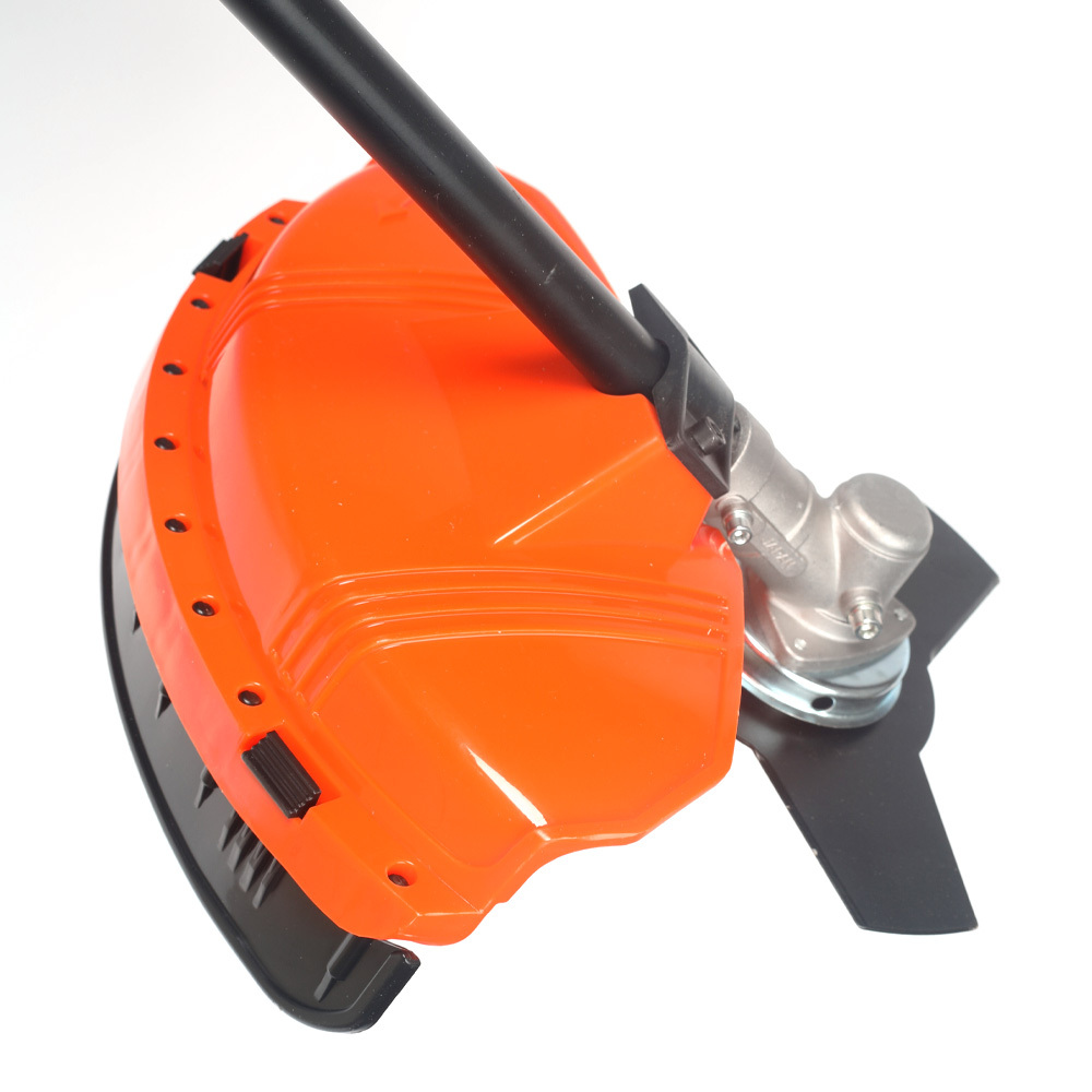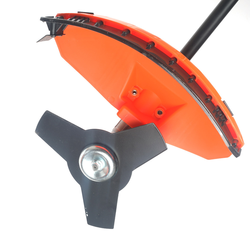 Двигатель в сборе; Нижняя часть трансмиссионной штанги с редуктором; Защитный кожух; Рукоятка; Набор ключей для сборки и обслуживания (опционально); Набор креплений для сборки; Комплект для установки триммерного ножа; Триммерная катушка; Нож 3-х лопастной; Наплечный ремень; Инструкция по эксплуатации;