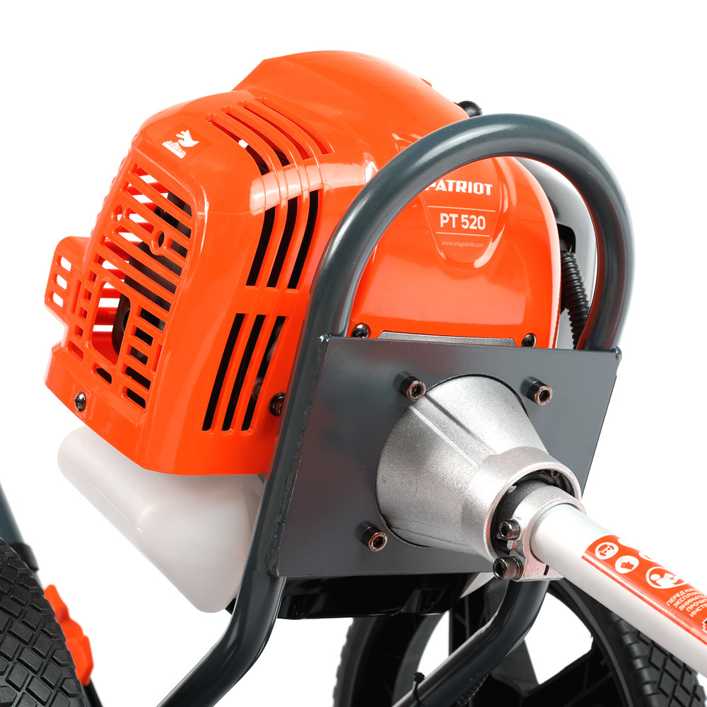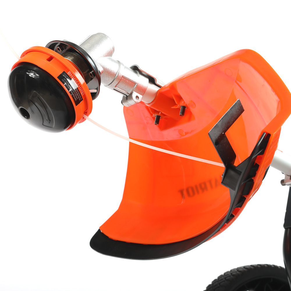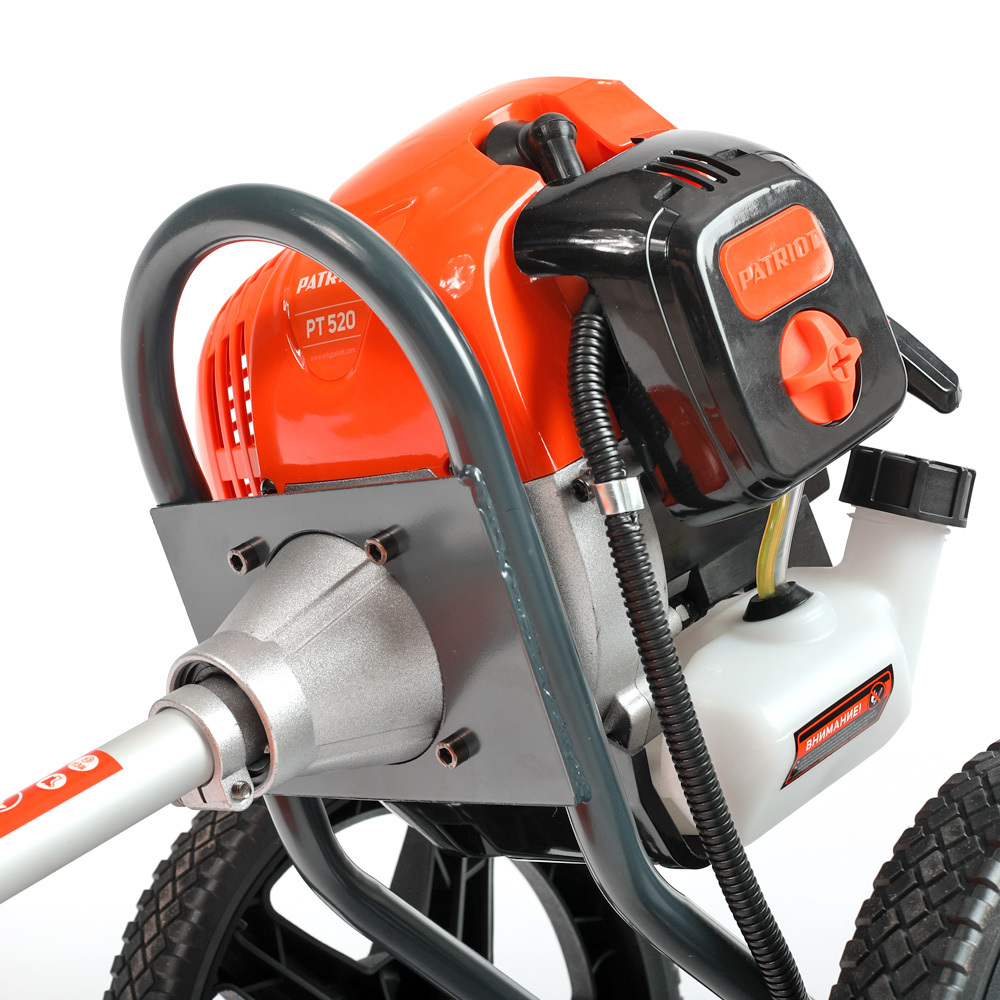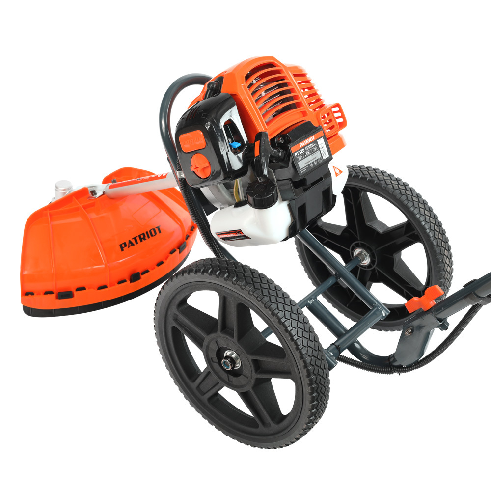 Триммер колесный; Колеса: 2 шт.; Трансмиссионный узел (вал) в сборе; Защитный кожух с крепежной планкой; Триммерная катушка; Металлический нож 3-х лопастной ; Комплект для установки триммерного ножа; Канистра для приготовления топливной смеси; Набор крепежа и инструментов для сборки и обслуживания; Запасная леска; Инструкция по эксплуатации;