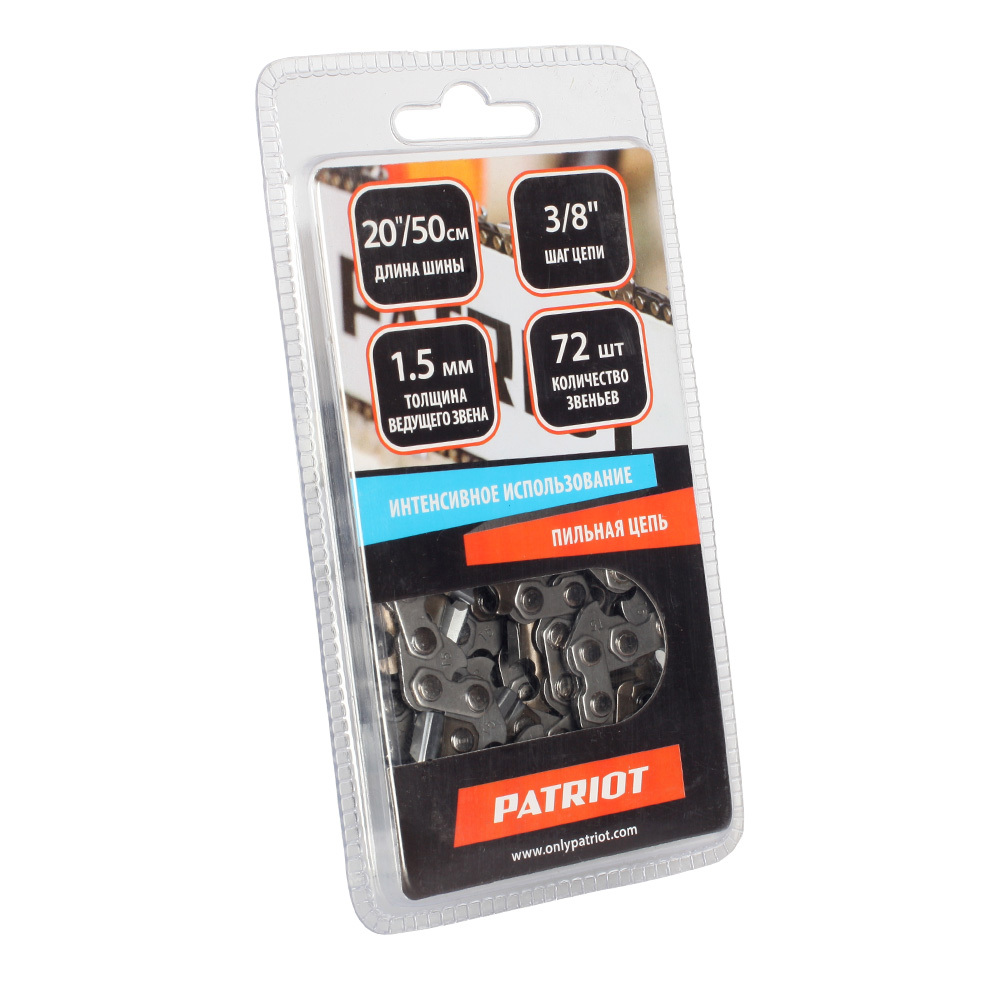 длина шины 20 quot;/50 см, шаг цепи 3/8 quot;, диаметр 4 мм, толщина 1.5 мм, 72 звена