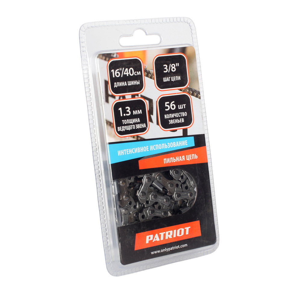 длина шины 16 quot;/40 см, шаг цепи 3/8 quot;, диаметр 4 мм, толщина 1.3 мм, 56 звеньев