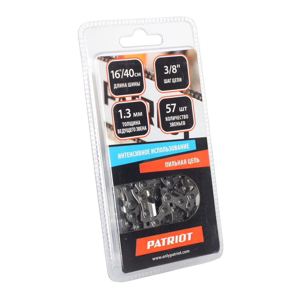 длина шины 16 quot;/40 см, шаг цепи 3/8 quot;, диаметр 4 мм, толщина 1.3 мм, 57 звеньев