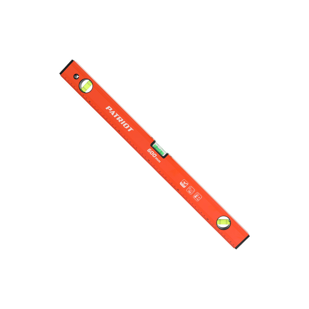 Уровень строительный PATRIOT LCP-600 длиной 600 мм для определения отклонения плоскости относительно горизонтали или вертикали с точностью до 1 мм/м. Корпус выполнен из алюминиевого сплава, устойчивого к коррозии. Торцы заглушки обеспечивают устойчивость к деформациям при падании.