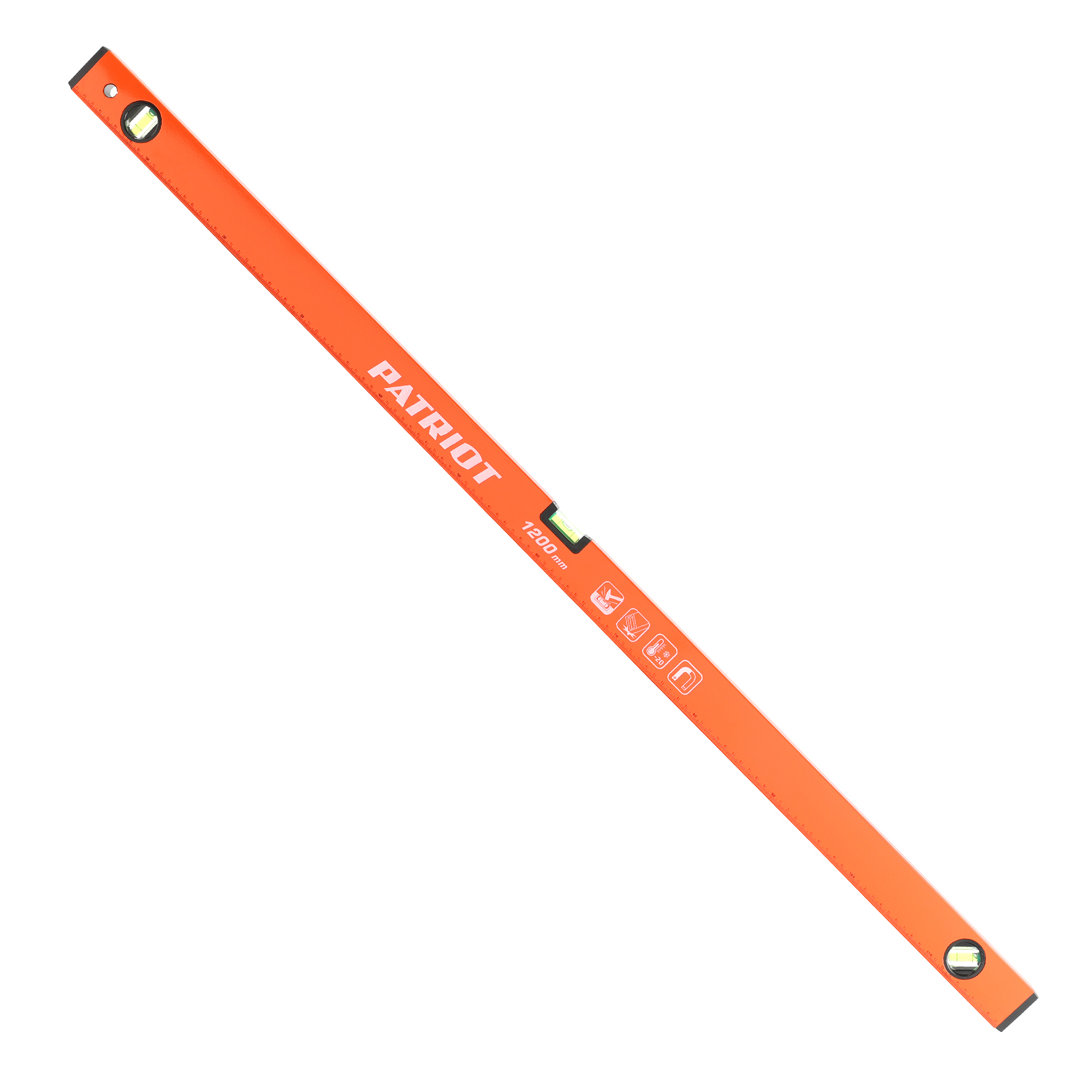 Уровень строительный LRP-1200 длиной 1200 мм для определения отклонения плоскости относительно горизонтали или вертикали с точностью до 0,5 мм/м. Корпус выполнен из алюминиевого сплава, устойчивого к коррозии. Торцы заглушки обеспечивают устойчивость к деформациям при падании.