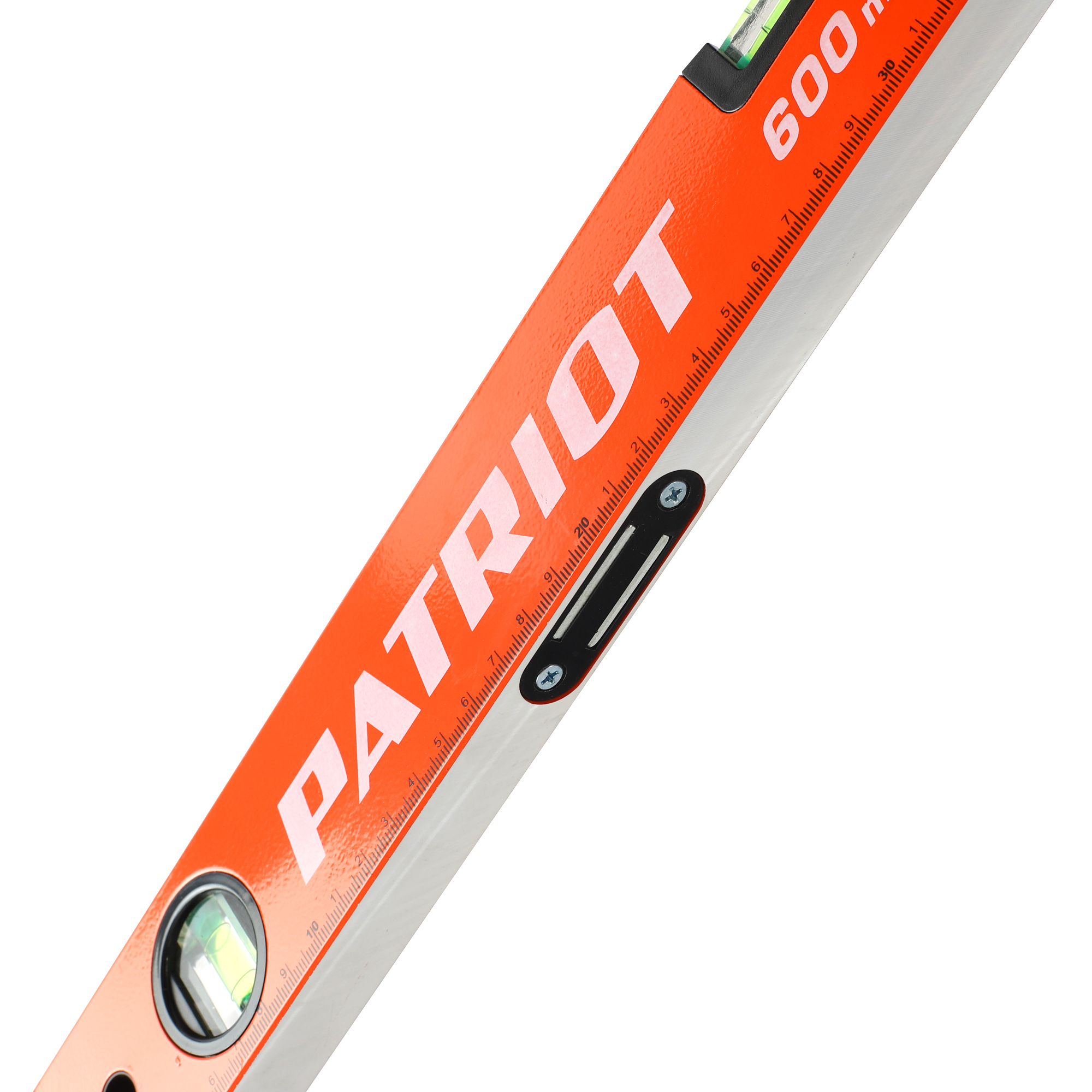 Уровень строительный PATRIOT LRP-600 длиной 600 мм для определения отклонения плоскости относительно горизонтали или вертикали с точностью до 0,5 мм/м. Корпус выполнен из алюминиевого сплава, устойчивого к коррозии. Торцы заглушки обеспечивают устойчивость к деформациям при падании.