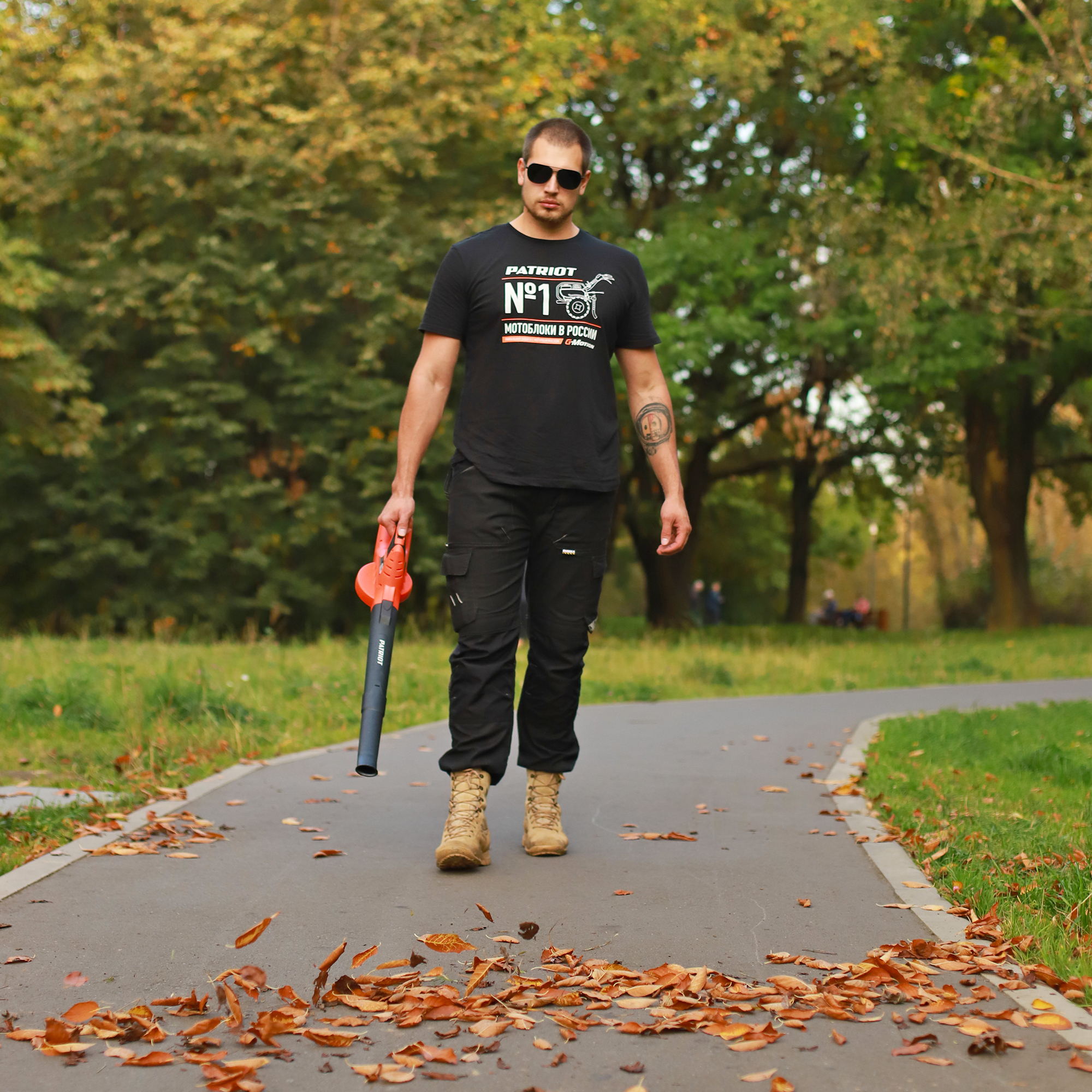 Воздуходув питается от долговечных Li-ion аккумуляторов системы UES – не нужно тянуть провода и удлинители через весь сад, а АКБ подойдет, например, от аккумуляторного шуруповерта Patriot UES.