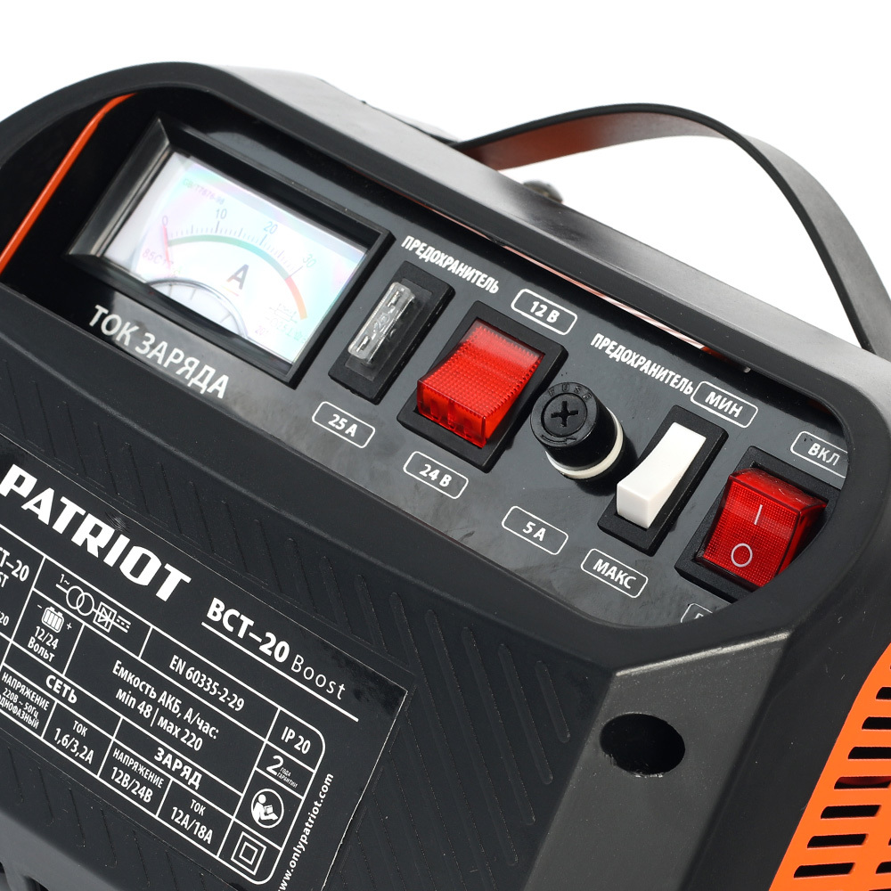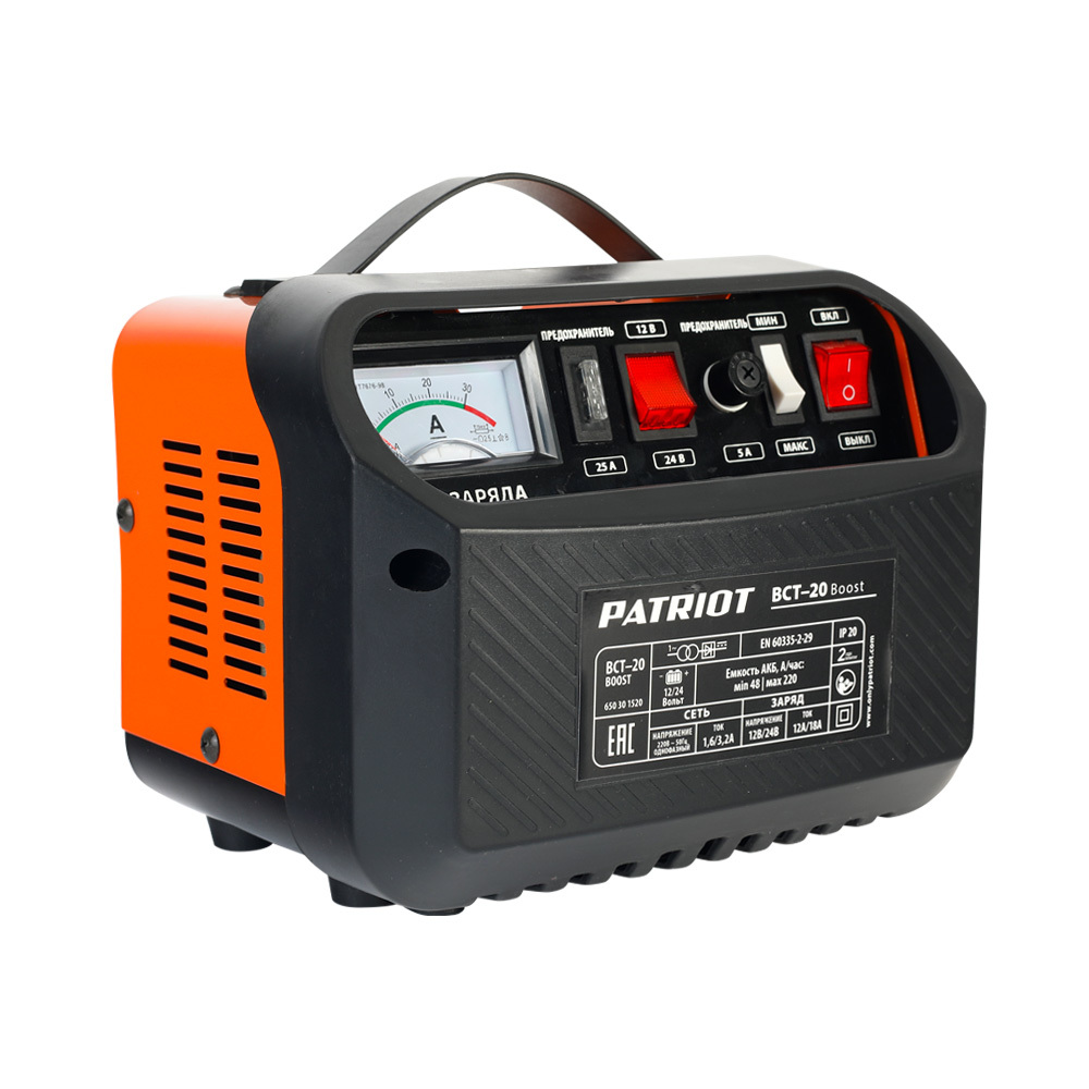 Устройство для бытового полупрофессионального или профессионального использования. Предназначено для зарядки свинцовых, кислотных аккумуляторов напряжением 12В и 24В. Ускоренный режим зарядки с повышенным током. Устройство высокого качества, удобно в использовании, оснащено переключателем напряжения тока, амперметром, защитой от перегрузки, неправильной полярности, короткого замыкания. Отсек для хранения проводов.